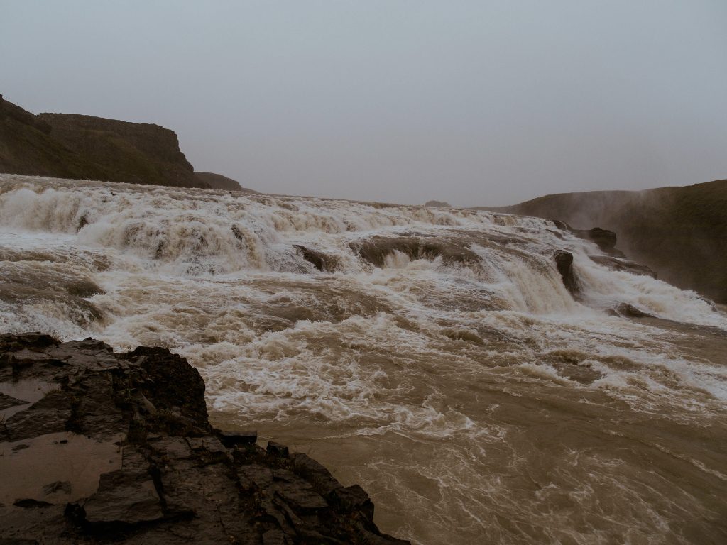 Am ersten Tag landeten wir nachmittags in Reykjavik. Dort wartete bereits der von Nordic Nomads organisierte Transfer, der uns gemeinsam mit einigen anderen Nordic Nomads Reisenden zum Startpunkt unserer Roadtrip-Abenteuers brachte. Es folgte eine ausführliche Einweisung, bei der wir das Auto, die Ausrüstung und natürlich auch das Dachzelt erklärt bekamen. Dann hieß es auf ins Roadtrip-Abenteuer! Das einzige, was nicht so mitspielte, war das Wetter. Trotz Nebel und Regen ließen wir uns die Laune nicht verderben und machten einen nassen Zwischenstopp am Kerið Krater und am beeindrucken Gulfoss Wasserfall, bei dem wir von allen Seiten geduscht wurden. Angekommen bei unserem Übernachtungsplatz waren wir dankbar, dass der Aufbau unseres Dachzelts bei dem Wetter innerhalb von 2 Minuten erledigt war und krochen müde in unser Zeltbettchen.