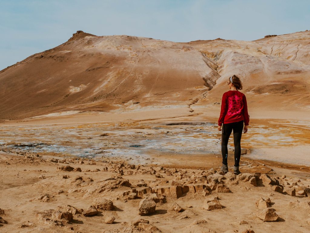 - Wanderung: Die relativ kurze (circa 20 min einfach) Wanderung von diesem Parkplatz zum Hverfjall Krater lohnt sich total. Oben angekommen kannst Du einmal und den Krater wandern.