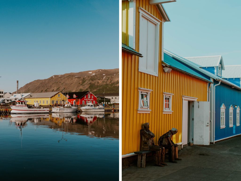 Weiter ging unsere Fahrt zum Wasserfall der Götter, dem 30 m breiten Goðafoss. Bei der anschließenden Fahrt durch Akureyri bewunderten wir die herzförmigen roten Ampellichter und machten uns auf Panoramastraßen auf in den hohen Norden Islands, ins Fischerdorf Siglufjörður. Unterwegs passierten wir einen One Way-Tunnel (siehe “Autofahren in Island” unten), ein Erlebnis. Siglufjörður selbst ist ein farbenfrohes kleines Dorf. Die Straße von dort nach Sauðárkrókur ist atemberaubend. Unser heutiger Campingplatz liegt direkt am Meer und hat eine eigene heiße Quelle. Ein Traum!