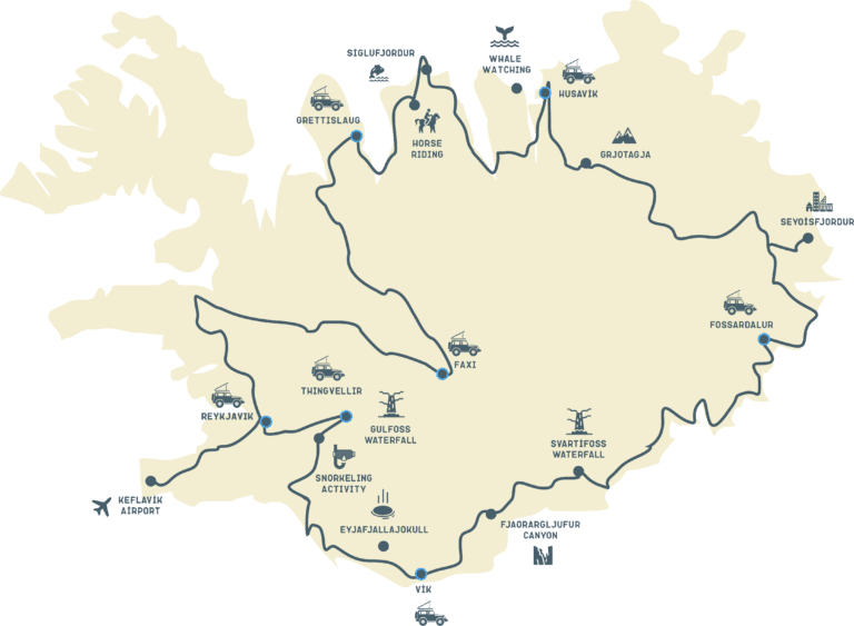 - Start/Ziel: Selfoss – Snæfellsnes – Reykjavik