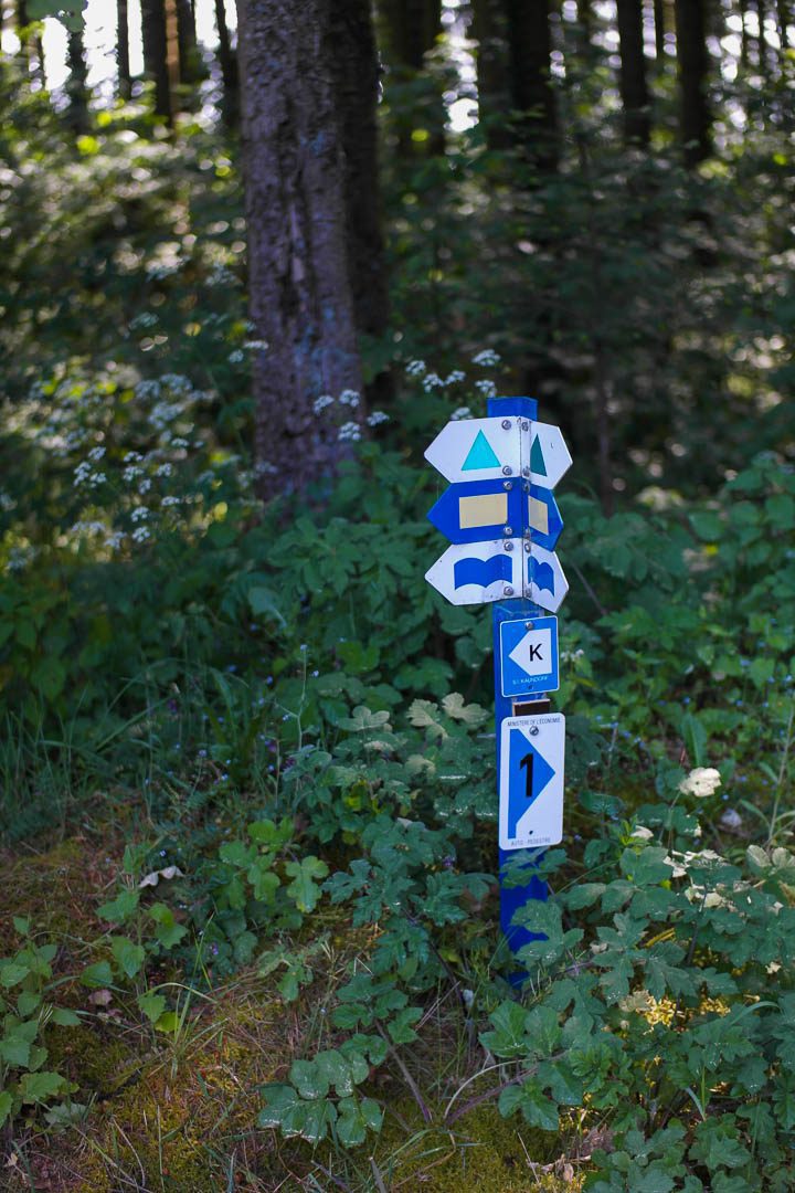Von Wiltz aus erreicht man den Startpunkt der von uns gewählten 15 km langen Etappe von Hoscheid nach Kautenbach am besten mit dem Auto (öffentliche Verkehrsmittel sind ebenfalls möglich). Das erste Stück der Wanderung deckt sich teilweise mit der Wanderroute “Klangwee Hoscheid”, ein Rundwanderweg mit 17 interaktiven Stationen, die zum bewussten Lauschen einladen. Nach den Klängen der Natur und nach denen der Musikspiele. Nachdem wir uns am spiralförmigen Xylophon und der Klangmurmelbahn versucht haben verlassen wir am Ufer der Lëtschbaachs den Klangwee und verfolgen unsere Route bis zur Tafel, die an das ehemalige Dorf Oberschlinder erinnert, das bis 1948 an diesem Ort existierte. Bei der Kapelle St. Michel halten wir eine kurze Rast bevor es durch waldreiche Abschnitte weiter bergauf geht. Schließlich erreichen wir das Hochplateau und streifen durch Wiesen und Felder bis zur Hoflee, auf deren Grat wir wandern und den Blick hinunter auf das Wiltztal genießen. Anschließend steigen wir ins Géischelterbaach-Tal hinab bevor uns ein letzter Aufstieg zu den Panorama-Aussichtspunkten “Hockslee” und “Obenschleid” mit Blick auf Kautenbach führt. Von hier aus ist das Ende der Route schnell erreicht. Mit Zug und Bus ist man innerhalb von 45 min wieder am Ausgangspunkt in Hoscheid angekommen. Alternativ fährt man eine Viertelstunde mit dem Zug nach Wiltz.