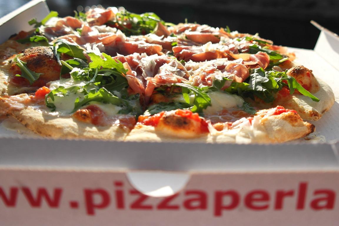 Pizza ist immer lecker. Aber besonders im Sommer. Ruft sie doch automatisch die Sehnsucht nach Italien hervor. Eine Pizzeria, die das auf jeden Fall schafft ist La Perla. Bei schönem Wetter sollte man sich nicht die Mühe machen im kleinen Restaurant gegenüber der Pizzeria einen Platz zu ergattern sondern die Pizza gleich mitnehmen. In der Sommersonne an einer Gracht sitzend schmeckt die Pizza gleich nochmal um einiges besser. Meine Lieblingspizza: Prosciutto San Daniele
