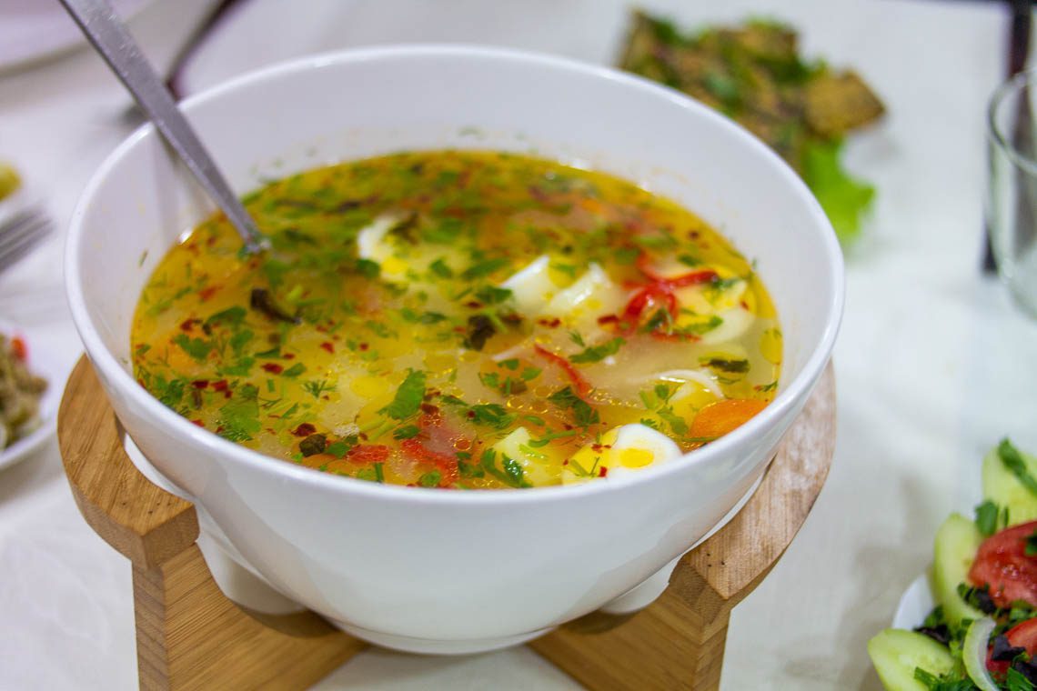 • ESSEN & TRINKEN |  Was in Georgien der Koriander ist, ist in Armenien die Petersilie. Diese wird wahllos über alles drüber gestreut. Ansonsten ist Armenien bekannt für seine authentischen Lammgerichte und die Würze der Gerichte. Wir haben auf unserer Reise durch Armenien hauptsächlich leckere Grill- und Lammspezialitäten gegessen, meist in Schaschlik-Form (Khorovats auf armenisch). Nicht für Jedermann ist sicherlich Khash, eine stundenlang gekochte Brühe mit Knoblauch, Kutteln und Rinderfüßen, welches traditionell frühmorgens serviert wird. Die Nähe zur Türkei erklärt, warum in Armenien auch gerne Kufta (Rindfleischfrikadellen in einer Butter-Paprika-Soße) und Baklava (Blätterteiggebäck mit Nüssen und Honig) verzehrt wird. Zu beinahe jedem Gericht wird Lavash, dünnes armenisches Brot, welches in alten Tonöfen gebacken wird, gereicht. An Getränken solltest Du unbedingt einmal den für Armenien typischen Granatapfelwein probieren. Auch in Armenien erfreut sich Kompot, der Saft von eingemachten Früchten (siehe unten Mitte) großer Beliebtheit.