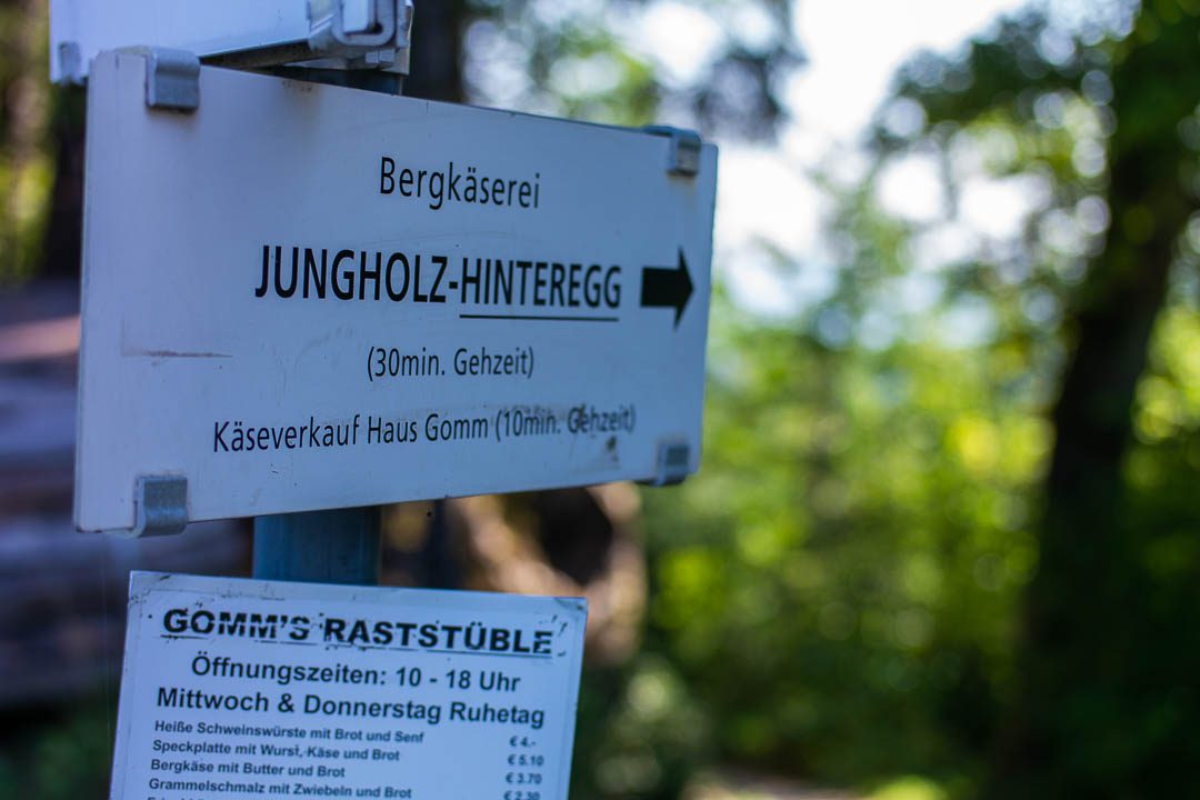 - Der Käsewanderweg eignet sich auch bei wärmeren Temperaturen, da sich ein Großteil der Strecke entlang oder durch Wälder führt. Ich empfehle, die Route zur Orientierung von dieser Webseite vorab auf’s Handy herunterzuladen oder am Startpunkt abzufotografieren. Lediglich die rot markierte Route kennzeichnet den Käsewanderweg.