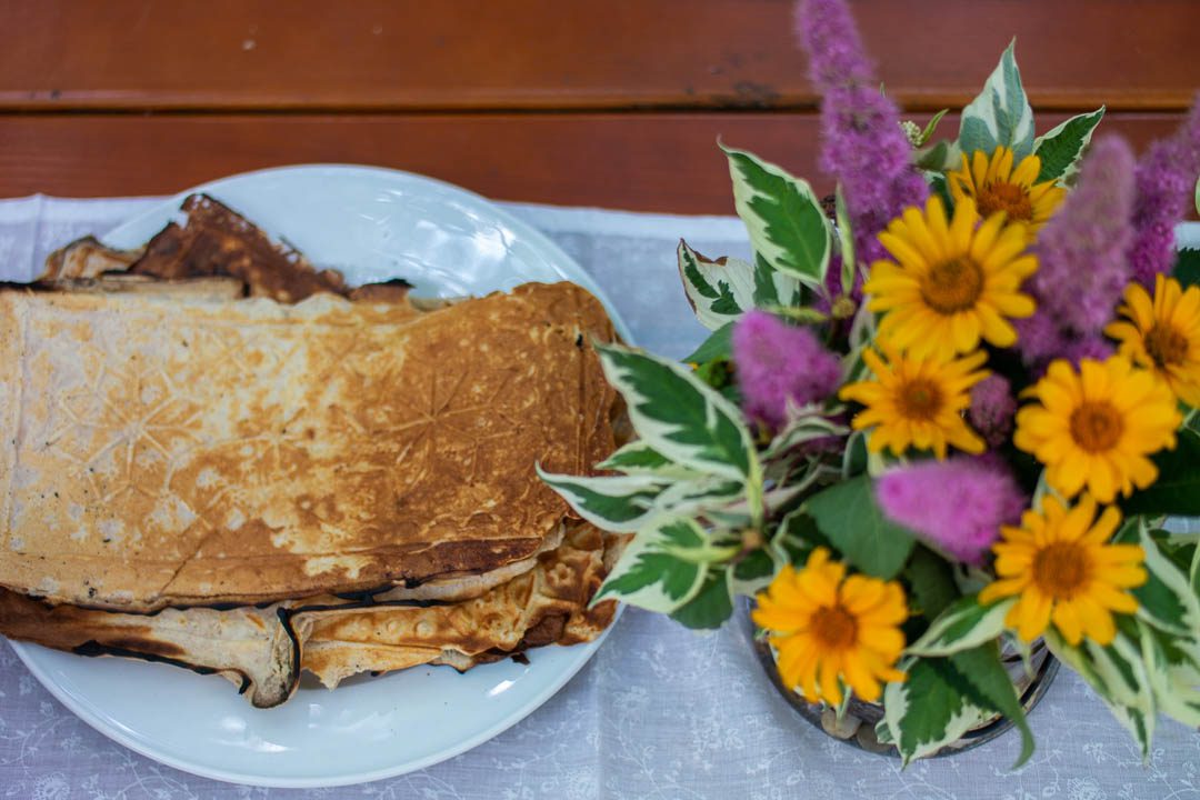 Über uns spielt der Wind in den Eichen, Namensgeber der “Alten Eiche”. Früher gab es nur eine davon, erzählt Hanna Präger, allerdings wurden nach und nach die anderen Bäume im Biergarten ebenfalls mit Eichen ersetzt. Hanna ist vieles zugleich: Betreiberin der Alten Eiche, Vorsitzende der Offenen Höfe und Mutter. Aufgrund letzterem ist die Alte Eiche derzeit nur jedes 1. und 3. Wochenende im Monat geöffnet. Weithin bekannt ist die Alte Eiche für ihr Freiluftkino und ihren Weihnachtsmarkt, zu welchem die Eichen stimmungsvoll beleuchtet werden. Zudem ist Hanna für besondere Anlässe und Veranstaltungen zu buchen. So führte sie uns in die Kunst des Klemmkuchenbackens ein und bereitete uns ein unglaublich fotogenes und obendrein leckeres Picknick im Schlosspark von Wiesenburg.