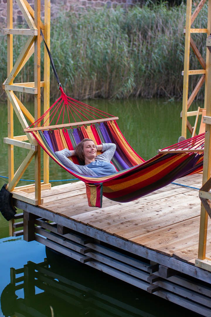 - Das günstigste Übernachtungsmodell ist im eigenen Zelt und kostet inklusive 3 Mahlzeiten und Nutzung alles Einrichtungen gerade einmal 25,- Euro pro Nacht. Des Weiteren kann im Glampingzelt und im Gästezimmer genächtigt werden
