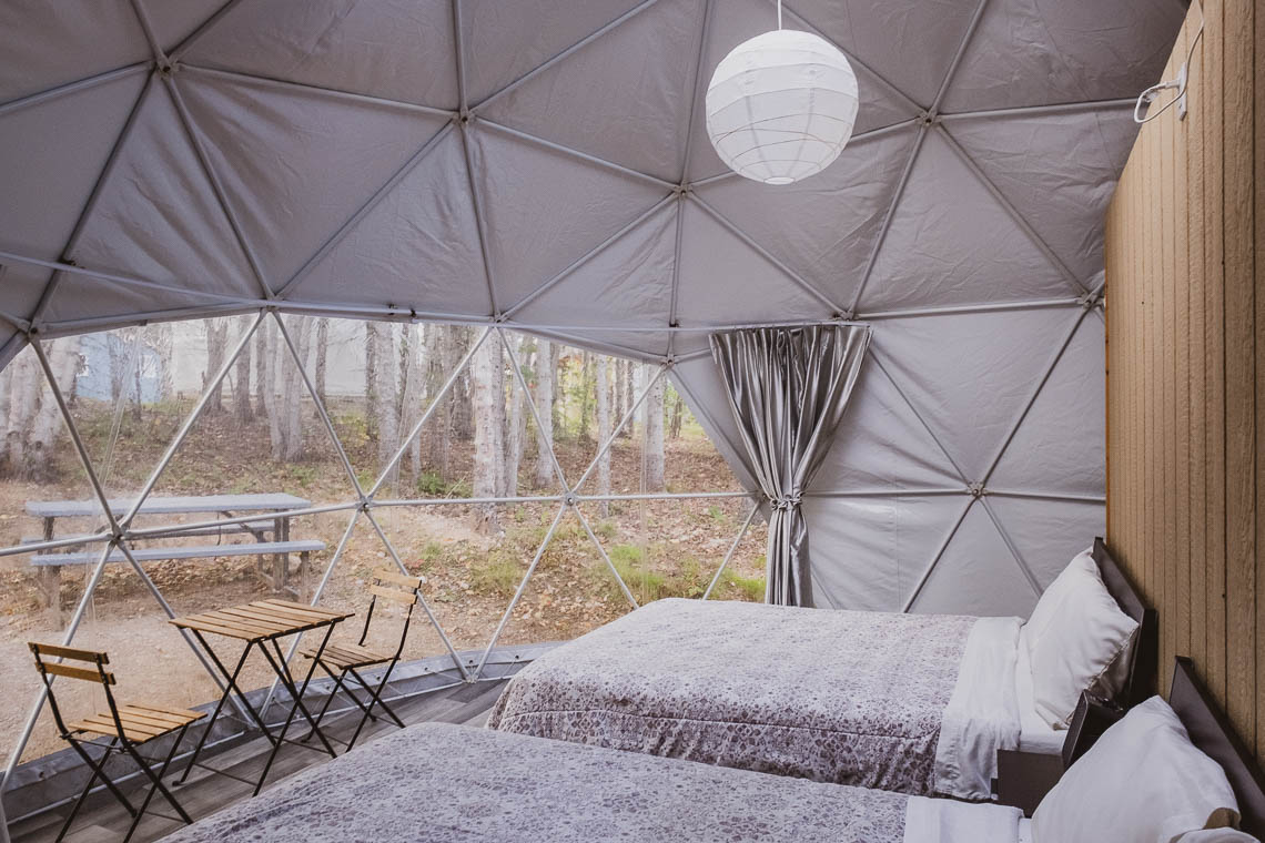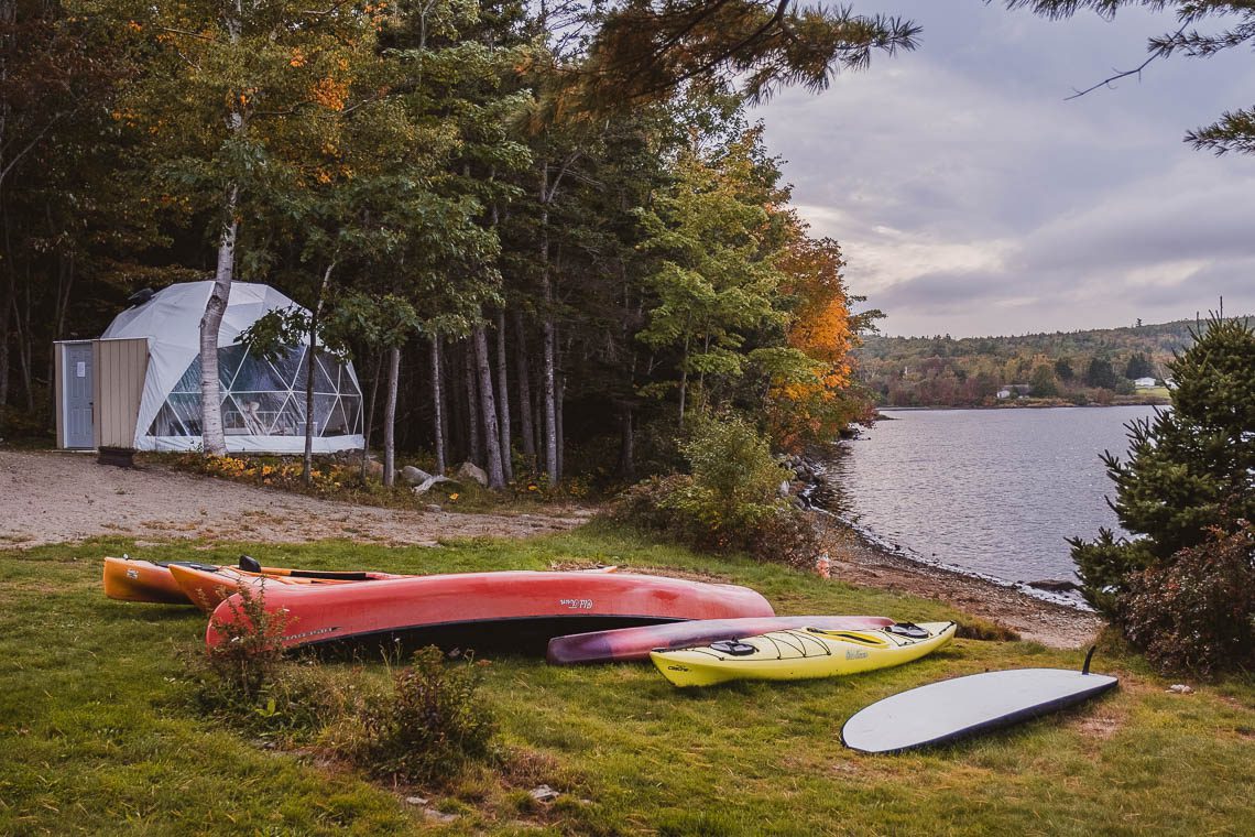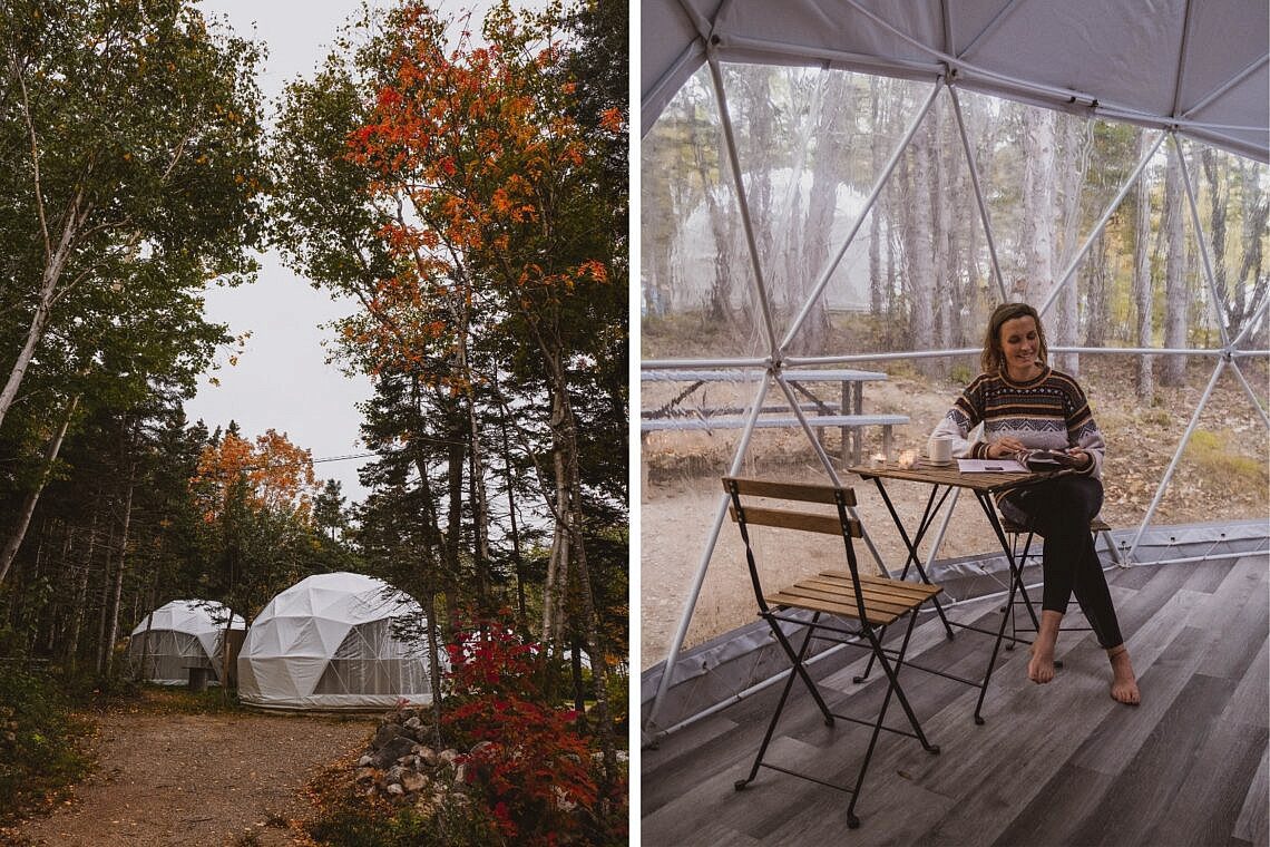 Etwas, das schon lange auf meiner Wunschliste stand, war eine Übernachtung in einem Dome, einem kreisrunden Zelt, das an einer Seite durchsichtig ist und den Blick auf die umliegende Natur öffnet. Im Blue Bayou Resort in Dingwall haben wir uns diesen absoluten Traum der besonderen Unterkünfte in Nova Scotia erfüllt. Wir gönnten uns einen wunderbar geräumigen und überraschend gut isolierten Dome mit zwei Doppelbetten, einem Tisch und 2 Stühlen, und visuell abgetrenntem (nicht geräuschgeschütztem) Badezimmerbereich mit Toilette, Dusche und Waschbecken sowie eine kleine Kitchenette mit Wasserkocher. Aufwachen mit Waldblick, einschlafen mit Blick in den Sternenhimmel. Traumhaft!
