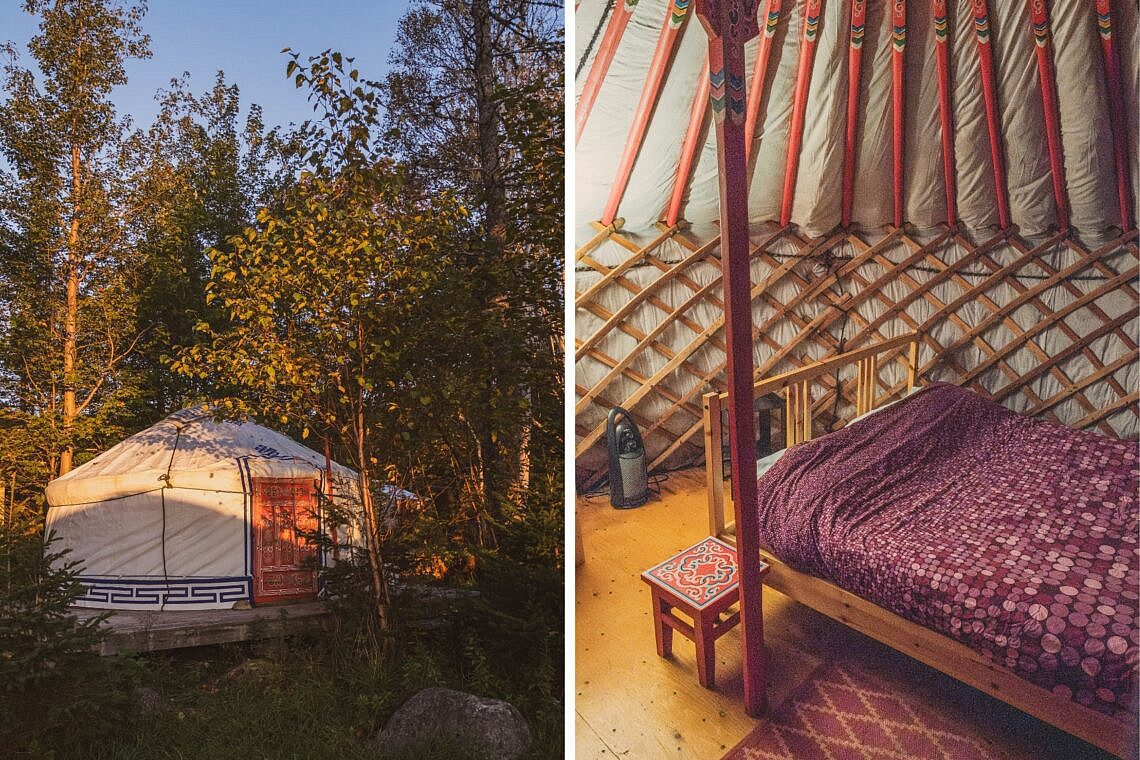 - Unterkünfte: Jurten, Domes, Chalets, Tiny House oder Gästezimmer. Tipp: Die Flying Moose Jurte hat die allerbeste Lage