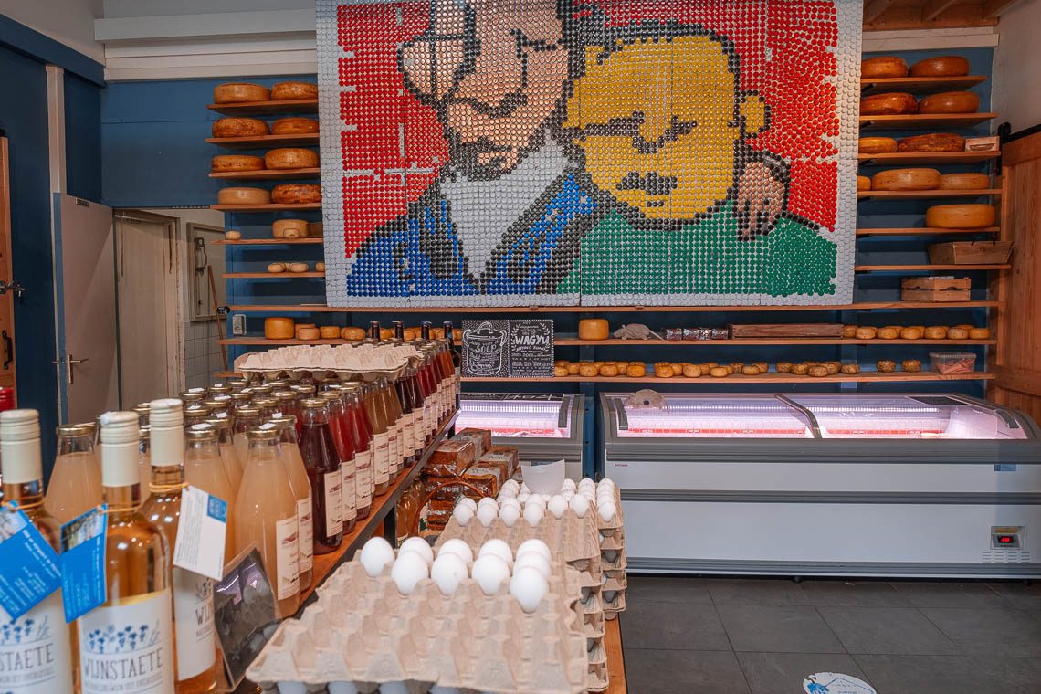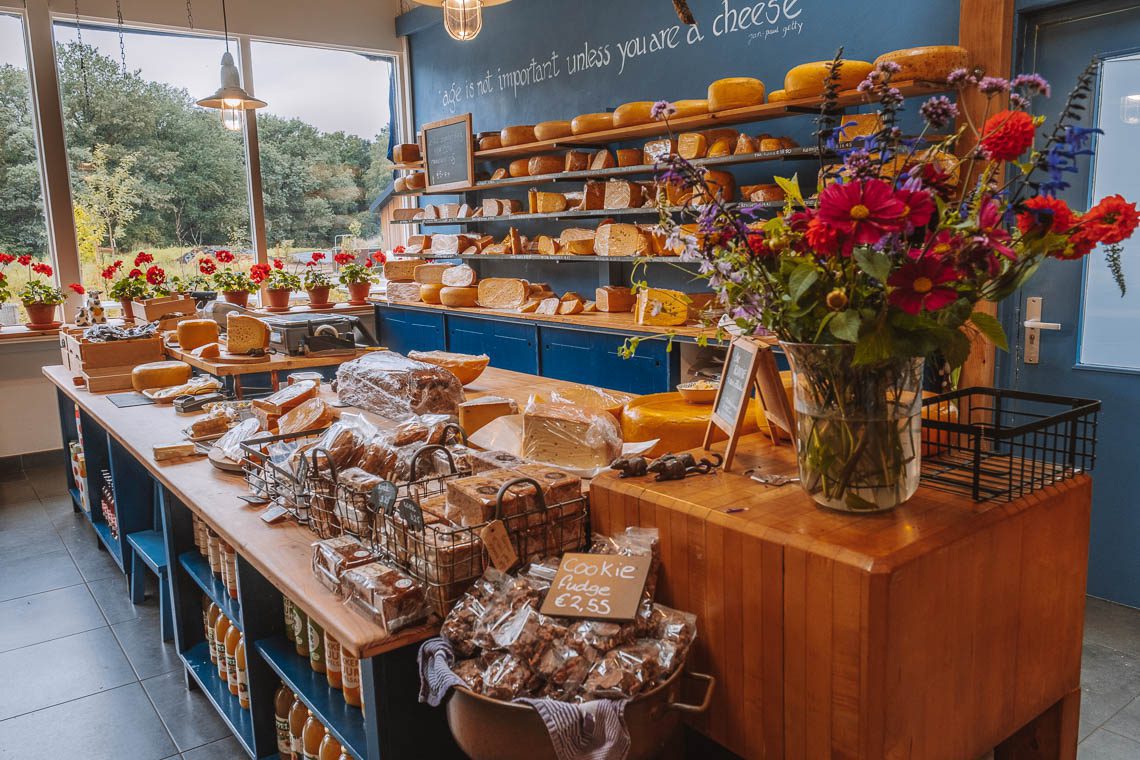 Der wohl schönste Hofladen, den ich je besucht habe, befindet sich in Dalmsholte: Die Kaasboerderij Heileuver. Seit 40 Jahren wird hier auf traditionelle Weise Käse hergestellt, von der Milch der 60 bauernhofeigenen Kühe, die auf den umliegenden Weiden grasen, aber auch von umliegenden Bauernhöfen. Der Käse von Heileuver hat sich einen Namen gemacht und lockt Besucher aus Nah und Fern an. Und das ist noch nicht alles. Neben Käse kann man im Hofladen jede Menge lokale Leckereien aus dem Umkreis kaufen. Und nebenan gibt es Kunst. Denn die Bäuerin ist Künstlerin. Ihre Kunstwerke und die von anderen lokalen Künstlern kann man im angrenzenden Atelier kostenlos besichtigen.