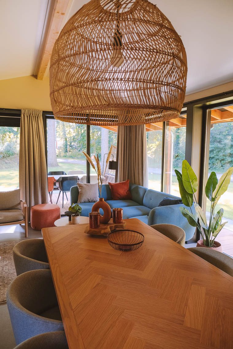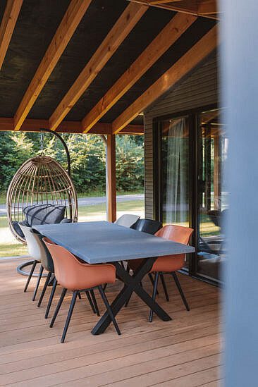 Meine Vechtdal Lounge im Park Ommerland bot bis zu 6 Personen Platz und verfügte nicht nur über eine sondern gleich zwei Terrassen, eine davon mit Lounge-Ecke und Sauna. Die moderne Einrichtung der Vechtdal Lounge war durchdacht und verströmte dennoch eine warme Atmosphäre. Ich habe mich direkt sehr wohl gefühlt. Die Vechtdal Lounge liegt weit hinten im Park aber sehr zentral zu allen Parkeinrichtungen. Der Aussichtsturm auf dem Besthmenerberg sowie die umliegenden Heidefelder und Wälder sind in wenigen Schritten erreichbar.