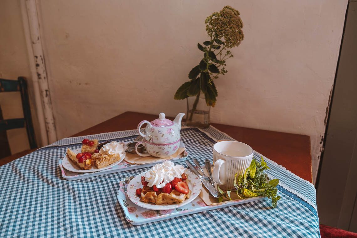 Erdbeerbauernhof und Tee-Ausschank. So übersetzt sich Aardbeienboerderij en Theeschenkerij ins Deutsche. Das klingt wie Musik in meinen Ohren. Bei RozemArrie werden Erdbeeren angebaut, die man selbst pflücken darf und zudem gibt es einen kleines Café. Ich liebe das Konzept der niederländischen “Theetuinen” (Teegärten), privat geführte Cafés, die mit viel Liebe zubereitete, selbst gemachte Leckereien servieren. Im urigen, mit Bauernhofelementen dekorierten Café von RozemArrie mit Spielecke gönne ich mir eine frische Waffel mit Erdbeeren und Sahne zum Minztee mit frischer Minze aus dem eigenen Garten. Ein Traum!