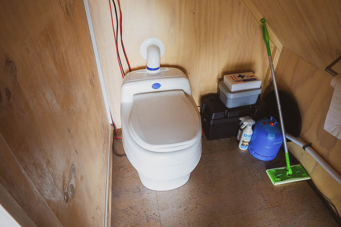 Was mir besonders gefällt, ist, dass die Flöße mit nachhaltigem Bezug erbaut wurden. Auf dem Dach befinden sich 2 Solarzellen, die das Licht über dem Bett und in der Toilette sowie 2 USB-Anschlüsse mit Strom beliefern. Die Toilette ist eine geruchlose Öko-Trenntoilette, das Wasser zum Hände- und Geschirr waschen kommt aus einem Tank und wird anschließend in einem Abwassercontainer aufgefangen.