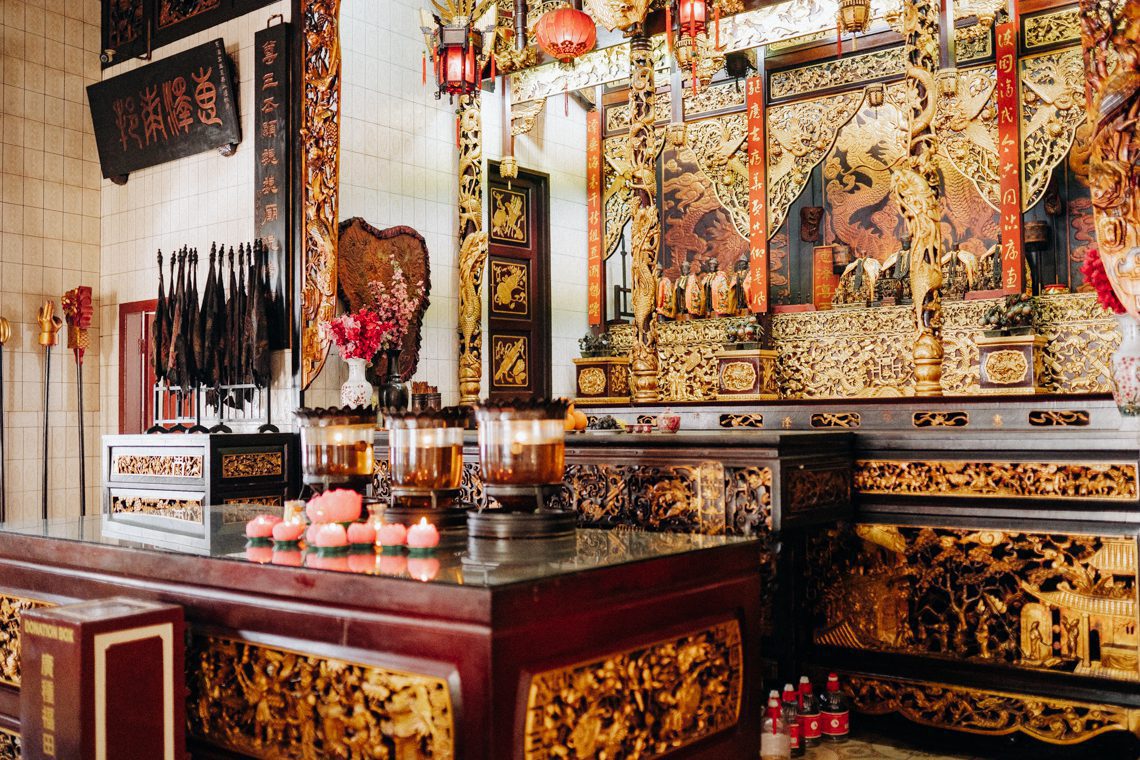 Von der Food Mall aus weiter der Straße folgend findest Du einen chinesischen Tempel, den Yap Kongsi Tempel, welcher 1924 erbaut und 1992 ausgebessert sowie schöner verziert wurde. Gewidmet wurde er dem chinesischen Gott des Wohlstands. Eingemeiselte Geschichten eines Krieges an den Eingangsäulen und die bunten Kacheln des Daches versprechen mehr, als wirklich im Inneren tatsächlich zu sehen ist. Noch heute leben neben dem Tempel Clanmitglieder, die sich über die Jahre dort ihr zuhause geschaffen haben.