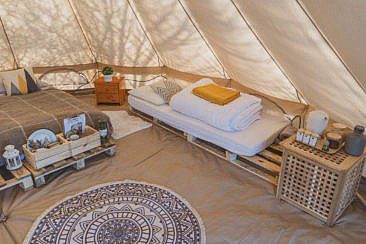 Nach einem erfolgreichen Probelauf mit Freunden im vergangenen Jahr hat Manon 2021 in Rekordzeit eine wunderbare Oase geschaffen, die Skandinavien-Feeling aufkommen lässt. Das Camp befindet sich mitten im Grünen und nur wenige Schritte von einem Badesee entfernt.