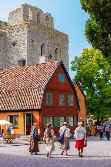 Jedes Jahr Anfang August tauschen die Einwohner Visbys ihre Alltagskluft gegen Gewänder und Rüstungen und verwandeln sich für eine Woche in Mägde und Adelsfrauen, Kaufmänner und Ritter. Der Grund dafür? Die Medeltidsveckan, die Mittelalterwoche, welche bereits seit 1984 jährlich stattfindet. Geboren aus dem Wunsch heraus, die Einwohner Visbys an die reiche Hansegeschichte zu erinnern, ist inzwischen Schwedens größtes Mittelalter-Festival herangewachsen, das über 40.000 Besucher und Mittelalterfans aus Nah und Fern lockt, erzählt uns Viveka Schwartz, die 86 Jahre junge Initiatorin der Medeltidsveckan mit glänzenden Augen. Bis zum heutigen Tag übernimmt sie eine tragende Rolle bei der Organisation, welche durch die Stiftung Stiftelsen Medeltidsveckan übernommen wird. Und das mit viel Freude und Elan, wie man deutlich sieht. Kulisse der Festlichkeiten ist die historische Altstadt von Visby mit ihrer mächtigen Stadtmauer, den Treppengiebelhäusern und den mit Rosen überrankten schmalen Gassen, in die sich das mittelalterliche Treiben perfekt einfügt.