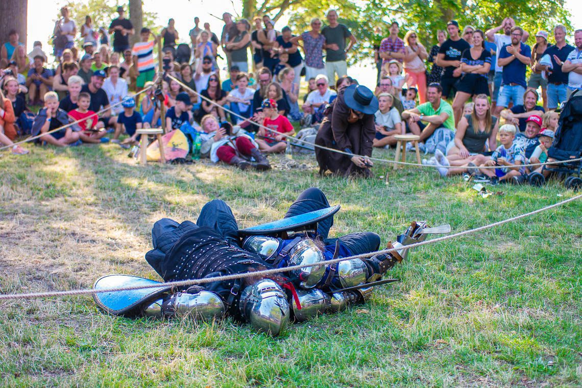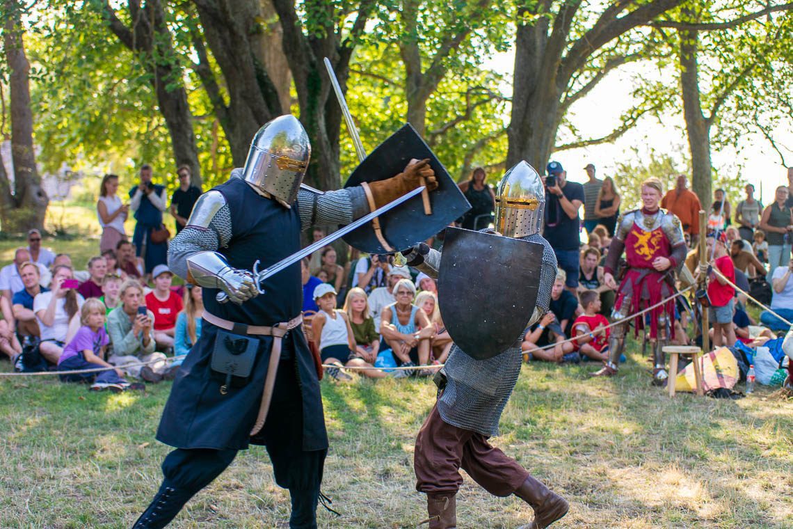 Bei meinem Besuch im August 2018 konnten die Ritterturniere aufgrund der andauernden Hitze und akuten Brandgefahr leider nicht stattfinden. Dennoch ließen es sich einige Ritter nicht nehmen im kleinen Kreis beim Schwertkampf gegeneinander anzutreten. Auch ein mittelalterliches Fußballspiel konnten wir beobachten. Den perfekten Abschluss unseres Aufenthalts bei der Mittelalterwoche bildete ein Konzert der „Rockstars des Mittelalters“ Corvus Corax aus Berlin in der stimmungsvoll beleuchteten Ruine der Sankt Nikolai Kirche und ein abschließendes Bier mit Blick auf die Ruine, bei dem wir unseren Aufenthalt Revue passieren lassen. Unser Fazit: Selten haben wir so ein mitreißendes und in sich stimmiges Festival miterleben dürfen. Unglaublich, mit wieviel Liebe zum Detail das Festival ausgeführt wurde und mit wieviel Begeisterung die Einwohner Visbys selbst daran teilnehmen. Wer also die Chance hat, Visby zur Mittelalterwoche in der ersten Augustwoche oder alternativ beim “Medeltida Jul” (Mittelalterlichen Weihnachten) am zweiten Dezemberwochenende zu besuchen, sollte dies auf jeden Fall tun.