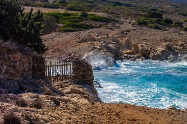 Nur mit motorisiertem Untersatz über eine kurvige und steile Straße erreichbar ist der Strand von Kimissi. Allerdings ist das, was einen hier erwartet die Mühe definitiv wert! Nur wenige finden den Weg an diesen kleinen Strand, idyllisch gelegen zwischen Felsen in einer Bucht. Türkisblaues Wasser und viel Ruhe erwarten einen hier. Links vom Strand liegt eine Kirche, Kato Kimissi. Wenn man dem verschlungenen Pfad etwa 20 Minuten lang bergauf folgt, erreicht man eine weitere Kirche, Pano Kimissi, in der über Jahrzehnte ein Mönch in aller Abgeschiedenheit hauste. Fotos im Kircheninneren erinnern noch heute an ihn. Besonders schön ist es hier in den Abendstunden.