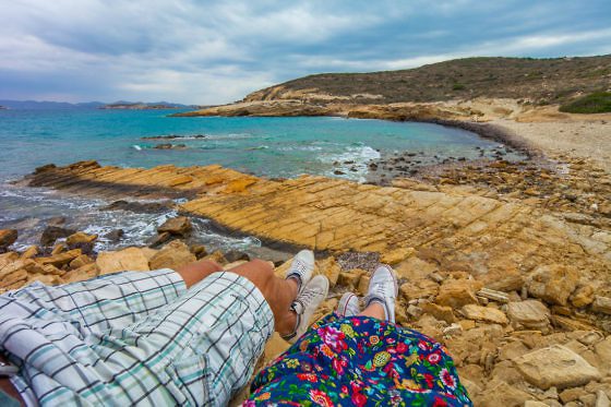 Nicht groß aber besonders ist die kleine Bucht, welche sich etwas südlich vom Chochlacura Strand befindet. Wie ein Halbmond ist die Bucht geformt, mit einem Felsvorsprung an der einen Seite, der eine natürliche Höhle und gleichzeitig natürlichen Sonnenschutz formt. Was sie so besonders macht: mitten im Fels ist ein Loch, durch das man schwimmend auf die andere Seite gelangen kann. Der Untergrund ist steinig, allerdings sind die Steine schön abgerundet und das Wasser so klar, dass man bereits vom Strand aus kleine Fische beobachten kann.