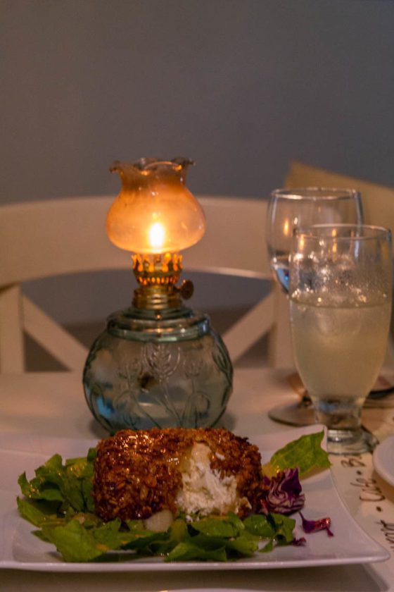 Ich empfehle entweder mehrere Vorspeisen oder eine Hauptspeise zu bestellen – beides ist von der Menge her nicht zu schaffen. Besonders lecker waren die beiden Vorspeisen gegrillter Ziegenkäse mit Honig und Getreidekruste sowie die mit Käse überbackenen Champignons. Bei unserem Besuch war zudem das traditionelle, im Ofen gebackene Kabeljaufilet mit Tomatensauce Tagesspezialität. Der Fisch zerging geradezu auf der Zunge und die Tomatensauce war würzig-fruchtig.