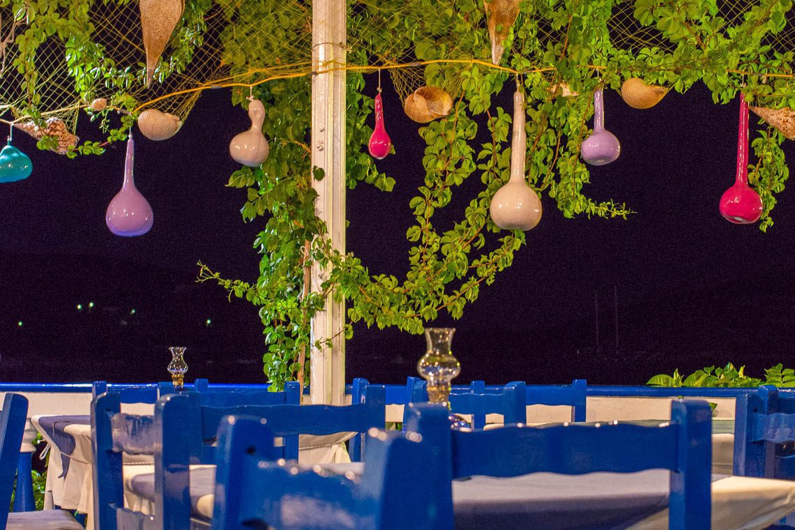 Nikos, der Besitzer von “To Pefko” ist nie um einen flotten Sprüchen verlegen. Er hat die Weltmeere als Crew auf einem Kreuzfahrtschiff überquert und verbringt seine Winter in England. Zusammen mit seiner Schwester Maria und deren Mann Takis führt er das Restaurant seit 2003. Der Name “To Pefko” stammt übrigens von der Pinie, die auf der Terrasse seines Restaurants sprießt (Pefko = griechisch für Pinie). In seinem mit Bougainvillea überrankten Restaurant direkt an der Hafenfront serviert er traditionelle griechische Küche mit Meerblick. Sein “feta meli” (frittierter Feta mit Honigsoße) war ein Gedicht, ebenso wie der Abokato Kairoka (Salat mit Avocado, Parmesan und Feigen), der Dako Ellinikos und der Kleftiko (traditionell griechisches Schmorgericht).