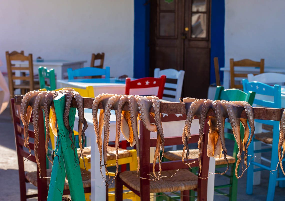 Gemächlich schaukeln die bunten Boote im Hafen von Lipsi, während im Hintergrund die Kalamari in der Sonne trocknen. Wie in ganz Griechenland so hat auch auf Lipsi der Fischfang eine lange Tradition und stellt eine wichtige Einkommensquelle dar. Die Fischer beliefern die lokalen Restaurants und Ouzerien, aber auch die umliegenden Inseln und teilweise sogar Athen. Gegen Abend, kurz bevor alle Fischer auslaufen, wird es am Hafenufer geschäftig.