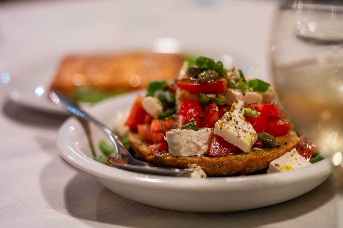 Ich empfehle entweder mehrere Vorspeisen oder eine Hauptspeise zu bestellen – beides ist von der Menge her nicht zu schaffen. Besonders lecker waren die beiden Vorspeisen gegrillter Ziegenkäse mit Honig und Getreidekruste sowie die mit Käse überbackenen Champignons. Bei unserem Besuch war zudem das traditionelle, im Ofen gebackene Kabeljaufilet mit Tomatensauce Tagesspezialität. Der Fisch zerging geradezu auf der Zunge und die Tomatensauce war würzig-fruchtig.