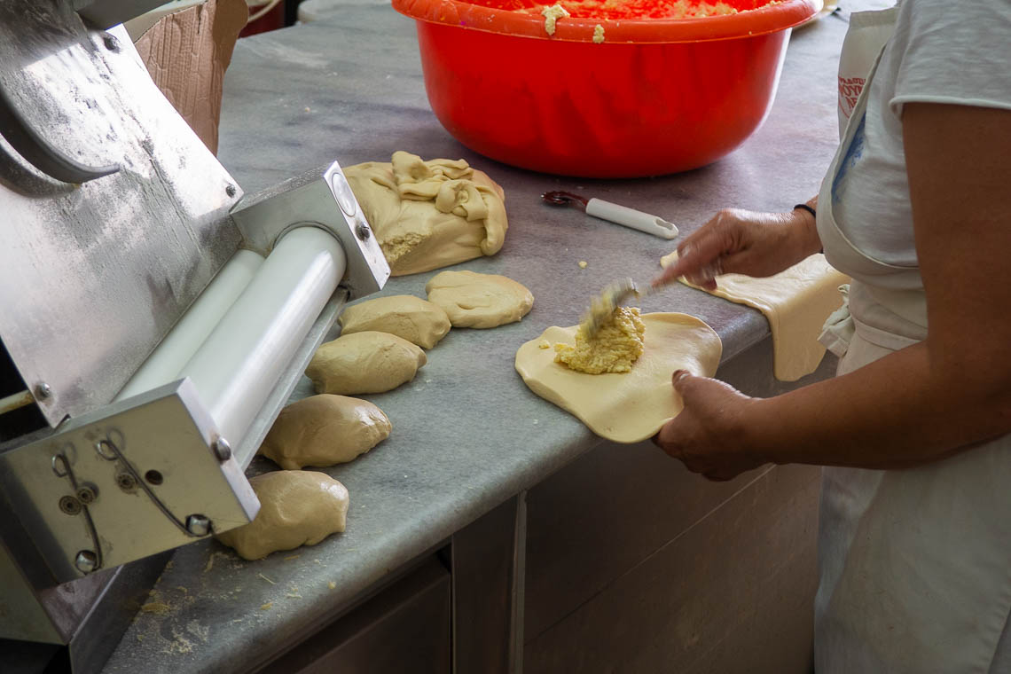 Die Bäckerei Kairis ist eindeutig der Dreh- und Angelpunkt der Insel. In den Sommermonaten ist sie 24 Stunden geöffnet und dient als Frühstücksadresse, Tante Emma-Laden, Bar, Café, Eisdiele und kulinarischer Souvenirladen gleichzeitig. Gefühlt kommt jeder Einwohner und Tourist mindestens einmal am Tag hier vorbei, sei es für einen Laib Brot (es gibt 14 verschiedene Sorten), einen Cappuccino oder einen Kaffeeklatsch. Takis Kairis, der Besitzer, hält die Bäckerei mit 17 Mitarbeitern Tag und Nacht am Laufen. Keine einfache Aufgabe bei dem unglaublichen Ausmaß des Angebots, welches zum Großteil selbst produziert wird. Besonders stolz ist die Bäckerei auf ihre traditionellen Spezialitäten mit lokalen Produkten. Vom selbstgemachten Eis mit Milch von der Insel, herzhaften Käsekuchen mit einem Eier-Käsegemisch bis hin zu traditionellen Nachspeisen und Kuchen gibt es hier alles. Meine absolute Empfehlung gilt auch dem göttlichen warmen Schokokuchen mit flüssiger Schokoladensoße. Mmmmh!