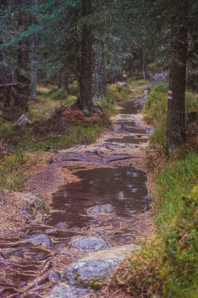 “Es gibt kein schlechtes Wetter, nur schlechte Kleidung“, denke ich mir, als ich im strömenden Regen in Sfazù Fermata aus dem Bus steige und zu meiner Wanderung ins Val da Camp aufbreche. Wie sich herausstellt, eine der schönsten Wanderungen überhaupt, die ich je gemacht habe – trotz Regen. Nur leider lässt mich nach meiner – den vielen Fotostops sei dank – stundenlangen Wanderung durch das unglaublich imposante Val da Camp, dessen Wanderwege sich bei Regen gerne in Bäche verwandeln, irgendwann trotzdem meine Ausrüstung im Stich.