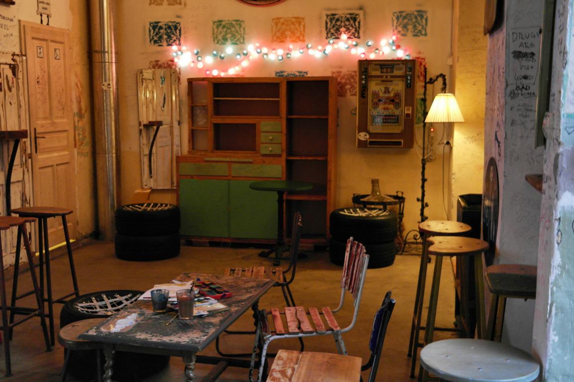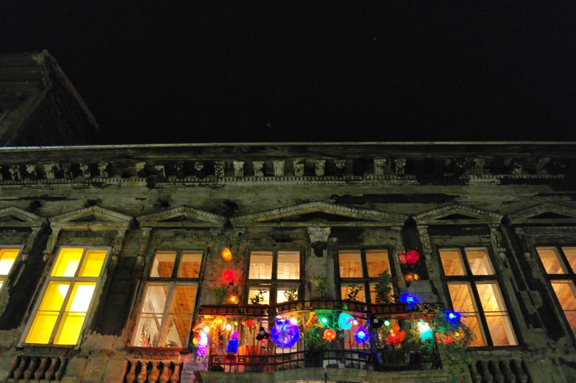 Den schönsten Innenhof? Hat meiner Meinung nach das Fogas Ház. Pfahlbautenartige Konstruktionen, bunte Schulstühle, von Bäumen baumelnde Glühbirnen, gemütliches Licht: Biergartenatmosphäre mal ein bisschen anders. Der Name Fogas Ház (deutsch “Zahnhaus”) rührt von einem Schild, das bei Renovierungsarbeiten gefunden wurde – das Gebäude beherbergte einstmals einen Zahnarzt. Das ist nicht das einzige ungewöhnliche Detail: Fogas Ház ist nämlich nicht nur ein Ruin Pub sondern auch gleichzeitig ein Hostel, ein Techno Club namens Lärm, ein Design-Laden mit Bar namens Schatzi und ein Mix von Salon, Wein-Bar und Club namens Liebling.