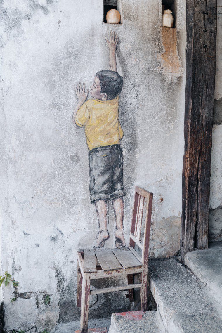 George Town, welches seit 2008 zum UNESCO Weltkulturerbe zählt, ist wohl eindeutig das Street Art-Paradies Malaysias. Künstler, die Gegenstände wie alte Motorräder, Fahrräder und Stühle nutzen, um sie mit ihrer Kunst zu verbinden, haben sich in der ganzen Stadt ausgetobt. Der rote Faden ist dabei das Thema spielende Kinder. Die Stadt hat mich wirklich sehr positiv überrascht und ich komme gern wieder. Vor allem für Künstler und Kreative ist es ein Ort, um sich zu verwirklichen. Vielleicht löst George Town bald Bali ab?