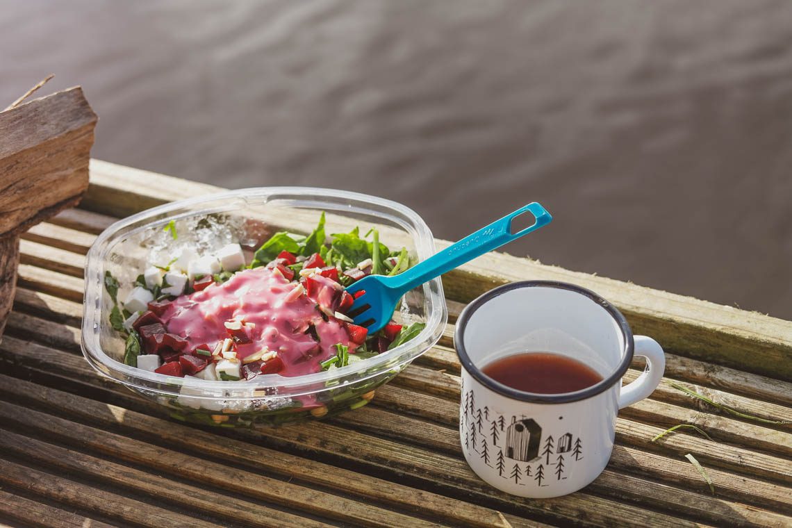 Am nächsten Morgen sind wir beide früh wach aber können vor Aufregung auf den neuen Tag und die Hoffnung auf einen schönen Sonnenaufgang auch nicht mehr länger liegen bleiben. Nachdem wir den rosafarbenen Himmel ausreichend bewundert haben (die Sonne selbst versteckt sich erst einmal), setzen wir unser Teewasser auf und schmieren unsere mitgebrachten Frühstücksbrötchen auf dem Holzsteeg. Ein letztes Mal genießen wir die vollkommene Ruhe, den Einklang mit der Natur und das tolle Gefühl, eigentlich nicht viel zum glücklich sein zu brauchen bevor wir zusammenpacken zur Weiterfahrt. Denn wir möchten heute morgen noch Monnickendam besuchen.