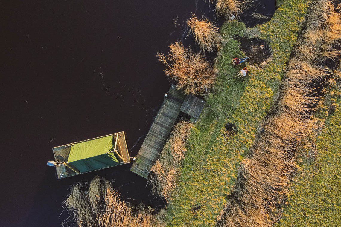 Entstanden als Herzensprojekt – Apostolis zieht so oft wie möglich selbst, am liebsten selbst mit seiner Familie und dem Floß los – merkte er schnell, dass die Kombination aus tagsüber Waterland mit dem Floß erkunden und abends legal (!) Wildcampen in der Natur sehr gut angenommen wird. So hat er dieses Jahr die Flotte auf 3 Flöße ausgebaut und arbeitet derzeit an einem Franchising Konzept, um die Flöße an noch mehr Orten in den Niederlanden verfügbar zu machen. Genau hierfür sind wir angereist!