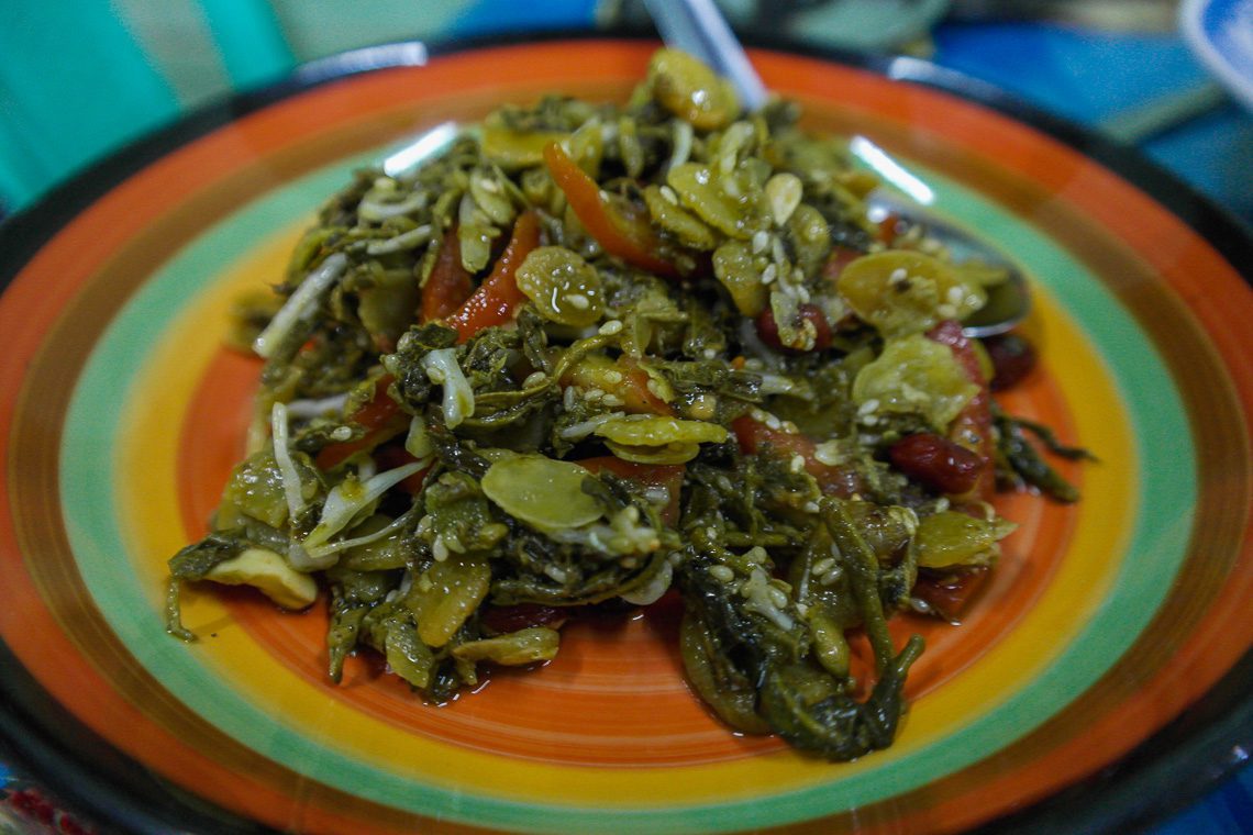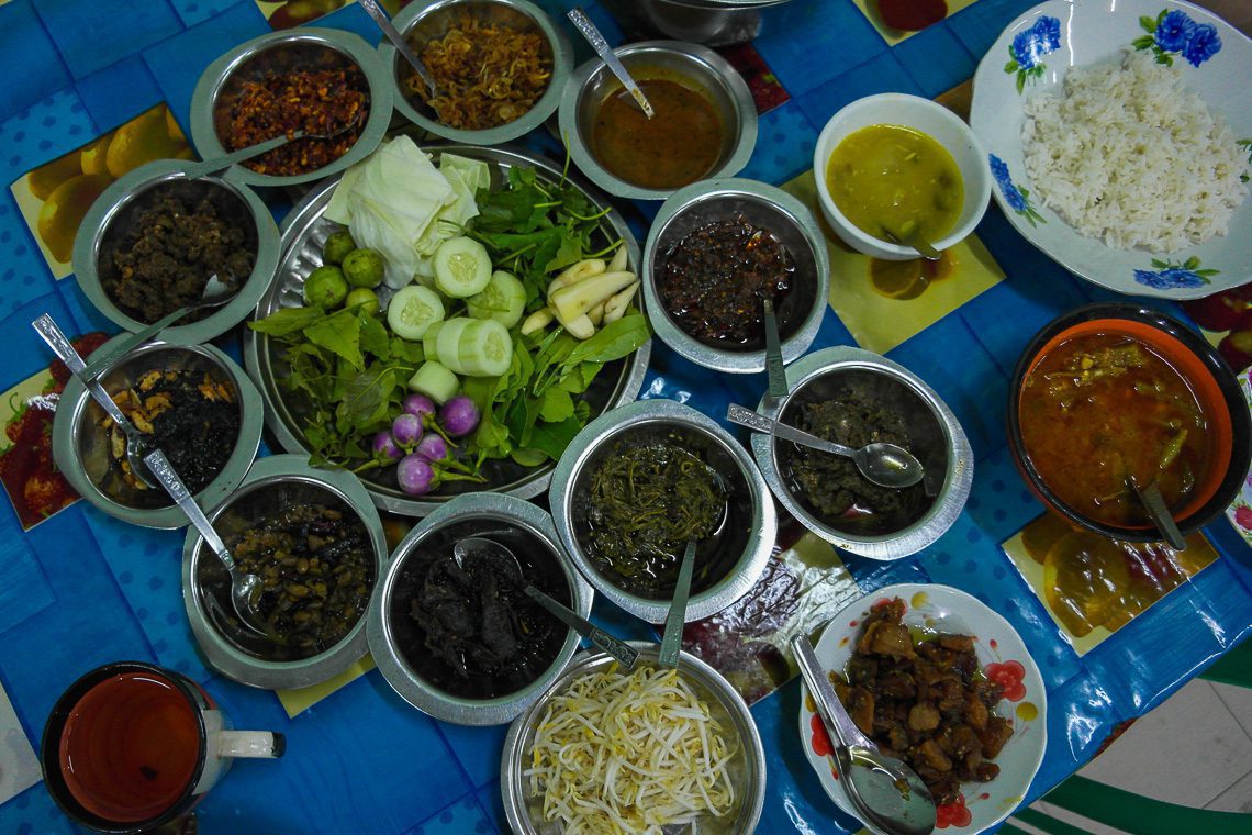 Das San Ma Thau ist das beste Restaurant in Hpa-An für traditionelles “Myanmar Food”. Das Restaurant wird von Einheimischen und Touristen gleichermaßen frequentiert und bietet ein wirklich gutes Preis-Leistungsverhältnis. Man wählt ein oder mehrere Hauptgerichte aus der Karte und erhält Reis, unzählige Töpfchen mit Soßen und Beilagen, Suppe, Tee und 3 Nachspeisen gratis dazu. Besonders lecker fanden wir die Honigkartoffeln. Zudem nutzten wir die Chance den für Myanmar typischen tea leaf salad (Teeblaettersalat) zu probieren.