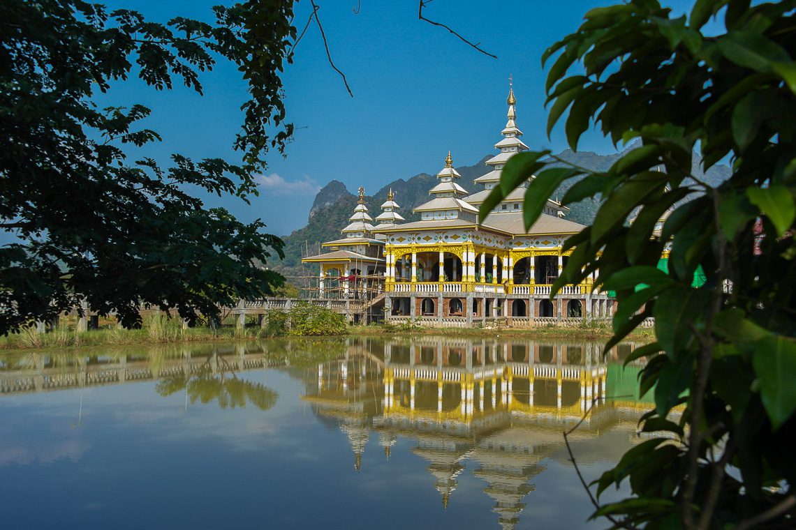 Spektakulär liegt die Felsnadel mit den goldenen Türmchen auf einer Insel inmitten eines kreisrunden Sees. Kyat Ka Lat ist definitiv das fotogenste Heiligtum von Hpa-An, nicht zuletzt auch wegen den Bergen rund um Mount Zwekabin im Hintergrund. Hierbei handelt es sich um eine Pagode, deren Schrein sich auf halber Höhe der Felsnadel befindet. Die Mönche leben in den Gebäuden am Fuße der Pagode, daher müssen die Schuhe beim Betreten der Insel hinterlassen werden und Respekt und Ruhe ist geboten. Zur Mittagszeit (12 – 13 Uhr) ist die Insel gesperrt zur Meditation der Mönche.