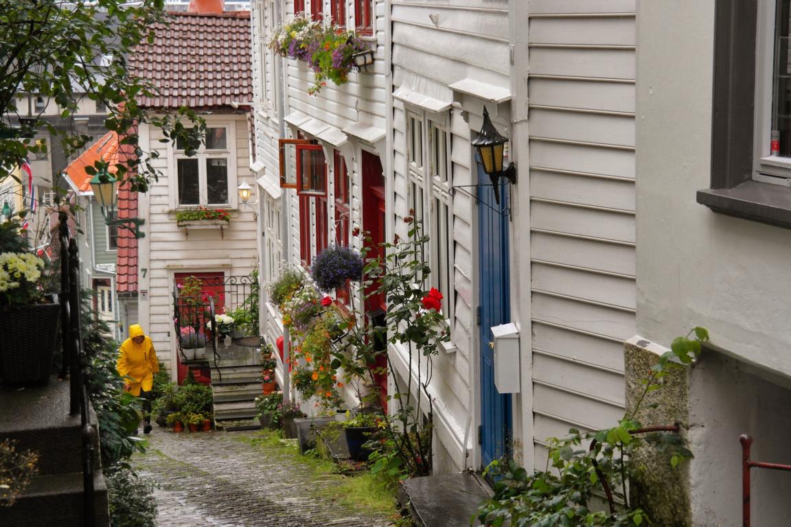 Norwegen-Kurztrip Die Bergen-Bahn, so die Zugstrecke von Oslo nach Bergen, wird als eine der schönsten Zugstrecken Europas gesehen und erhielt sogar einige Male die Auszeichnung “schönste Bahnstrecke der Welt”. Der Grund? Auf einer Strecke von 471,25 km bewegt sich die Bahn zwischen Meereshöhe und 1237 Höhenmetern und passiert unterwegs sämtliche Vegetationszonen – von fruchtbarer Tiefebene über das Hochgebirge der Hardangervidda mit Gletschern bis hin zu Fjorden. Die spektakulärste Teilstrecke der etwa 7-stündigen Fahrt beginnt kurz vor Finse, dem höchsten Bahnhof der Strecke auf 1222 m und geht bis Myrndal, wo viele Reisende aussteigen und der “Norway in a Nutshell”-Tour folgen. Schneebedeckte Berggipfel, unzählige Seen, an dessen Ufer sich rote und weiße Holzhäuschen schmiegen und tiefe Täler sorgen dafür, dass manch einer seine Nase am Fenster platt drückt. Überwältigt von den tollen Eindrücken und müde vom ständigen Aus-dem-Fenster-gucken kommen wir schließlich um 15:00 Uhr im regnerischen Bergen an. Wir machen uns auf den Weg zu unserer Airbnb-Unterkunft und freuen uns, dass diese in der Realität genauso gemütlich wie auf den Fotos ist. Ein kleiner Abstecher zum Supermarkt und einem chilligen Abend in den “eignen” 4 Wänden steht nichts mehr im Wege. Zumal der Regen gegen das Fenster prasselt. Norwegen-Kurztrip Norwegen-Kurztrip Norwegen-Kurztrip Auch an Tag 4 geht es früh aus den Federn – schließlich wollen wir etwas erleben. Nachdem wir die beiden Tage zuvor viel gesessen sind, wird es heute Zeit für ein wenig Aktivprogramm. Zuerst mit dem Bus, dann mit der Fähre machen wir uns von Bergen auf den Weg nach Utne. Von hier aus geht es mit dem Drahtesel 25 km bergauf und bergab, immer am spektakulären Hardangerfjord entlang. Dieser ist dank seines milden Klimas für den Obstanbau bekannt – zu unserem Besuch Ende Juli ist Kirschenzeit. Ein toller Ausblick jagt den nächsten bevor uns kurz vor Ende der Route ein 1-stündiger Aufstieg bevorsteht. So steil es auf der einen Seite hinauf geht, geht es auf der anderen Seite wieder hinunter, in rasantem Tempo Herand, dem Zielort unserer Radtour entgegen. Zur Belohnung gönnen wir uns eine Waffel mit Himbeersoße und Sahne zum erstaunlich leckeren Kakao-Wassergemisch bevor wir mit Fähre und Bus den Rückweg nach Bergen antreten. Norwegen-Kurztrip Norwegen-Kurztrip Das Wetter in Bergen ist schlimmer als alle England-Klischees zusammen – nicht nur was die Wechselhaftigkeit sondern auch die Regenmenge betrifft. Schließlich regnet es hier an durchschnittlich 240 Tagen im Jahr – ein Fakt, der Bergen zur Auszeichnung “regenreichste Stadt Europas” verholfen hat. Wenn man mich fragt eine zweifelhafte Ehre. Fazit: Auf alle Wetterlagen gefasst sein – vor allem die nassen – heisst die Devise. Leider haben die Schuhe meiner Reisebegleitung Löcher und so begleitet uns ein sattes Schmatzgeräusch bei unserer Erkundungstour durch die nassen Straßen von Bergen. Wir lassen uns treiben und stoßen auf niedliche Straßenzüge mit bunten Giebeln und Blumentöpfen auf den Treppenstufen. Dem unwiderstehlichen Zimtduft folgend treten wir direkt zur Öffnungszeit ins wunderbar heimelige “Krok og Krinkel Bokcafé” und gönnen uns einen leckeren Kaffee, Kakao und einem unwiderstehlichen Carrot Cake. Viel zu schnell ist der Zeitpunkt zum Aufbruch gekommen, das Flugzeug wartet. Norwegen, wir kommen wieder! ANREISE | Die für uns am besten gelegenen Flughäfen waren Oslo (OSL) und Bergen (BGO) ÖFFENTLICHE VERKEHRSMITTEL | Das öffentliche Verkehrsmittelnetz in Norwegen ist sehr gut ausgebaut. An abgelegenen Orten sind die Abfahrten meist in unregelmäßigen Abständen, es lohnt sich also diese vorab zu checken. Oftmals sind Fähren und Busse aufeinander abgestimmt. Viele Fährdienste in der von uns bereisten Region werden von Norled angeboten, eine Übersicht aller anderen Fährdienste gibt es auf dieser Webseite. Züge bucht man bei der NSB, der norwegischen Bahngesellschaft. Eine Übersicht aller Busunternehmen findest Du auf dieser Webseite. EINREISEBESTIMMUNGEN | Deutsche Staatsbürger können sowohl mit Personalausweis als auch mit Reisepass nach Norwegen einreisen. WÄHRUNG | Die Währung in Norwegen ist die Norwegische Krone (NOK). SPRACHE | Die Amtssprache in Norwegen ist norwegisch. Wie in allen skandinavischen Ländern sprechen die meisten Menschen vorzügliches Englisch. KLIMA | Das Klima auf dem norwegischen Festland ist erstaunlich mild, unterliegt aber großen Schwankungen. Die kältesten Monate sind Januar und Februar, der wärmste Monat ist der Juli. Die Westküste, insbesondere die Gegend um Bergen sind relativ stark von Niederschlägen betroffen. Generell gilt: Sich auf alle Wetterlagen gefasst machen. BESTE REISEZEIT | Ob zur Obstblüte im Frühling, zur Mitternachtssonne im Sommer, zum Beerensammeln im Herbst oder für Nordlichter und Schneepracht im Winter – Norwegen ist zu jeder Jahreszeit eine Reise wert. Die wärmste und trockenste Reisezeit ist von Mai bis September. KOSTEN | Norwegen ist alles andere als billig, das dürfte den meisten bekannt sein. Vor allem Essen und (alkoholische) Getränke aber auch Ausflüge schlagen ganz schön zu Buche. Geld sparen kann man in Norwegen indem man eine Ferienwohnung oder ein Zimmer (z.B. über Airbnb) bucht und sich größtenteils selbst verpflegt. Bei unserer Airbnb-Unterkunft war Frühstück inklusive, das Abendessen haben wir meist selbst gekocht (z.B. Nudeln mit Pesto und Broccoli für 1,70 €). Ein Picknick aus dem Supermarkt oder Kiosk ist meist um einiges günstiger als auf Fähren, in Zügen oder an touristischen Orten. Zugbuchungen sind am günstigsten wenn man früh vorab bucht. Richtig günstig da gratis ist es zu zelten. In Norwegen gilt das Jedermannsrecht, welches besagt, dass man überall in der Natur kostenlos zelten darf. Bedingung: 150 m Abstand zum nächsten Haus/ Hütte und eingezäuntes Gelände ist Tabu. ALKOHOL | Al
