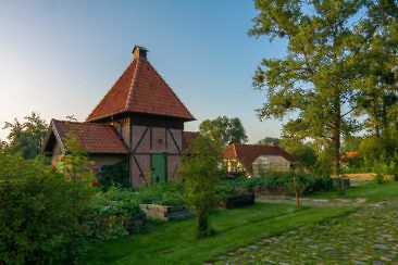 - Folwark Karczemka ist ein ehemaliger Gutshof am Ufer des Piniewskie-Sees und dem Elblag-Kanal. Die Anlage des Gutshofes ist weitläufig und die vielen Nebengebäude liebevoll renoviert, eingerichtet und bepflanzt. Man kann dort auch vorzüglich Essen, siehe weiter unten. Ein wundervoller Ort!