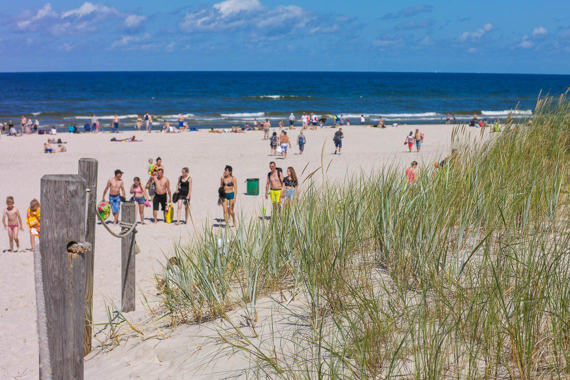 Die Ostsee und der feine Sandstrand sind wohl die Hauptanziehungspunkte der meisten Besucher Lebas. Dieser ist durch einen Dünengürtel mit Leba verbunden. Es lohnt sich, etwas mehr Zeit auf dem Weg zum Strand einzuplanen und ein wenig durch die Dünen zu stromern. Dann findest Du nämlich mit großer Wahrscheinlichkeit auch einen Strandzugang, der keinem Verkaufstunnel gleicht. In der Hochsaison kann ich zudem die frühen Morgen- und Abendstunden erwähnen, wenn Du den Strand weniger voll bevorzugst.