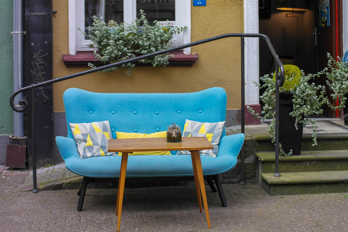 Nach meinem ersten Rundgang durch die fast leeren Gassen und Straßen lasse ich mich zu einem Latte Macchiato im stylisch-gemütlichen Matko i Córko nieder.