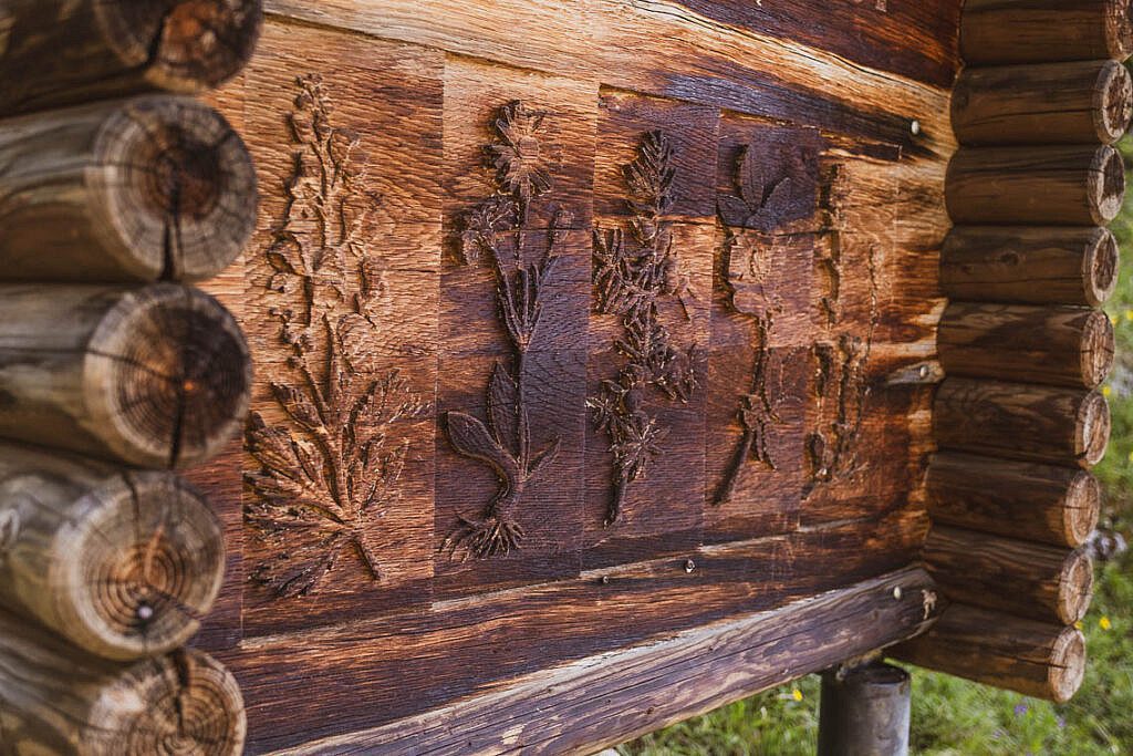 Bis zur Mässplatte deckt sich unsere Wanderung mit gleich drei Themenwanderungen, dem familienfreundlichen Rätselweg Klara auf der Alp, dem Energie-Spürweg (acht Stationen) und dem Heilkräuterweg Madrisa (19 Kräuterschilder und Hochalpiner Heilkräutergarten).