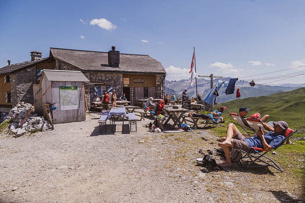 - Dritte Etappe: Übernachtung im Lager oder im Privatzimmer in der Schesaplanahütte. Einrichtungen: Dusche mit Münzen verfügbar, Steckdosen vorhanden.