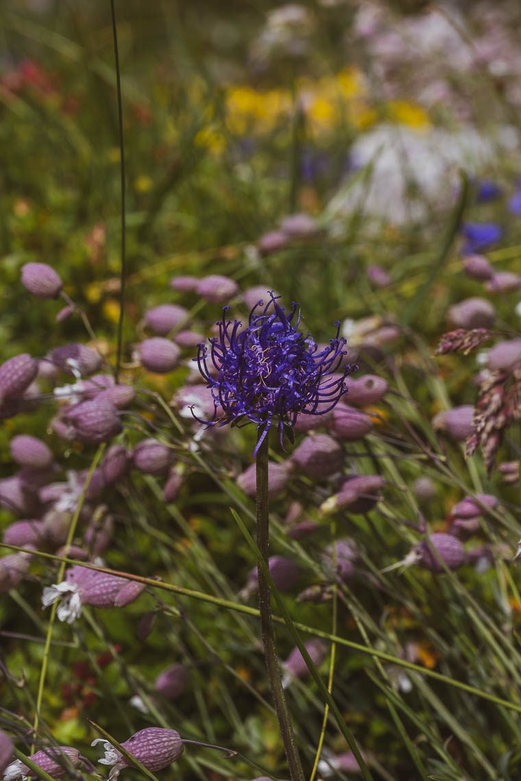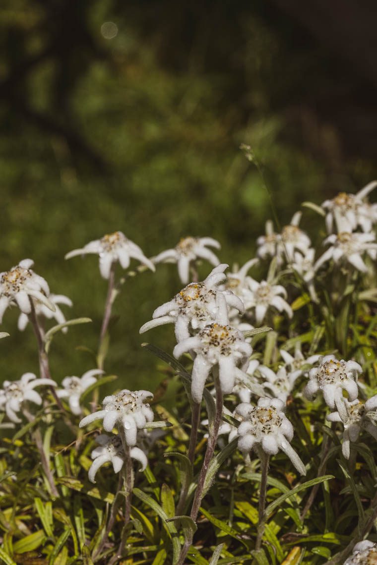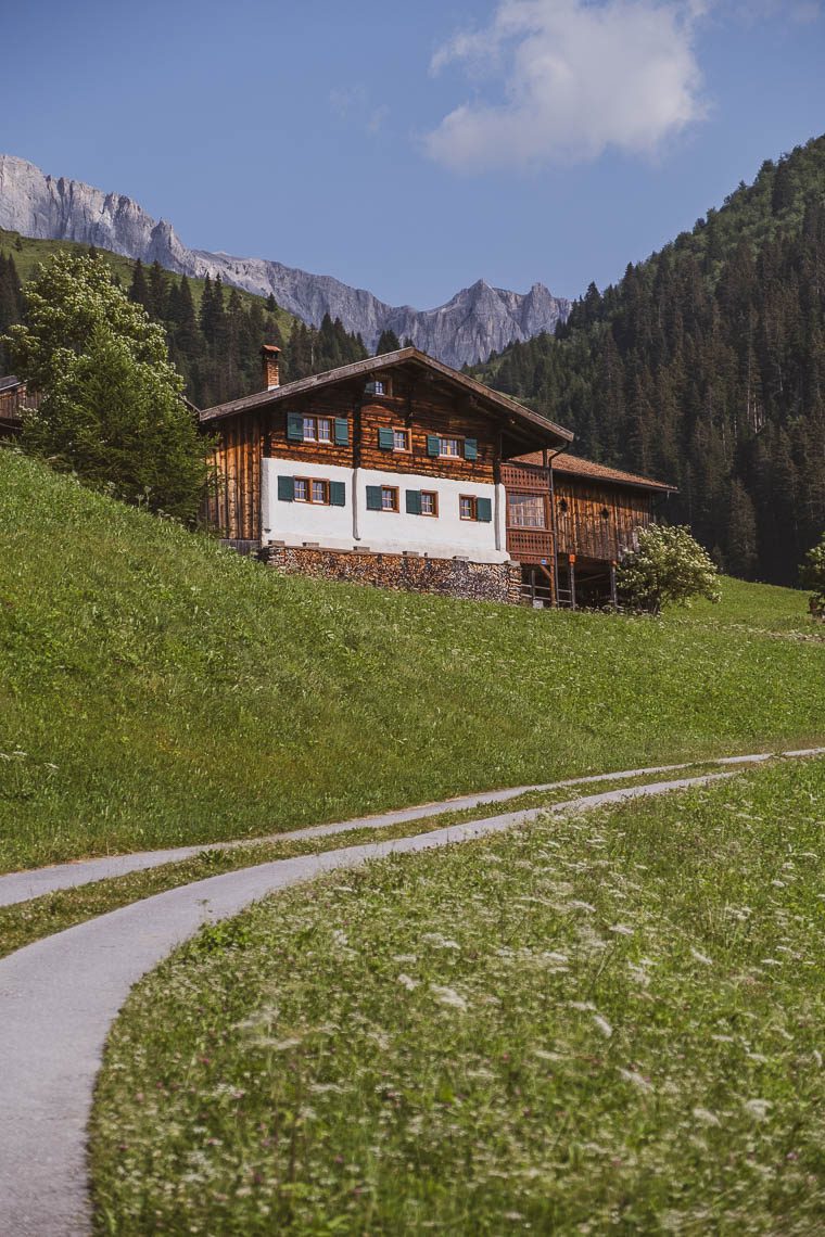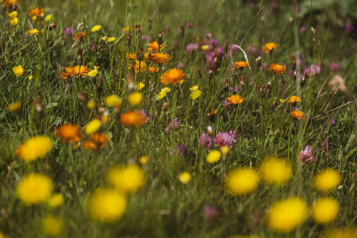 Die Entscheidung, die Route zu ändern und auf einen Aufstieg in der Mittagshitze zu verzichten, erwies sich bereits bei unserem Abschied von Sonja’s Michelshof als die Richtige. Schon jetzt, um halb 8 morgens wurde die 25 Grad-Marke geknackt. Daher verschwendeten wir auch nicht viel Zeit und machen uns auf den Aufstieg auf den Bärgli (2137 m). Zuerst über Fahrstraßen, dann über kleine Pfade bahnen wir uns unseren Weg immer weiter nach oben. Immer wieder erhaschen wir einen Blick auf eine kleine Berghütte, bewundern Blumen und lauschen dem Konzert der Alpen – dem Bimmeln der Kuhglocken.