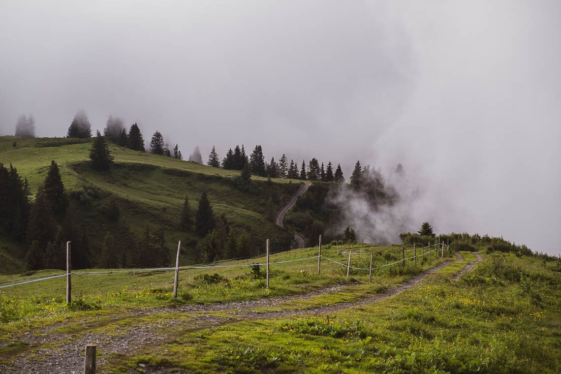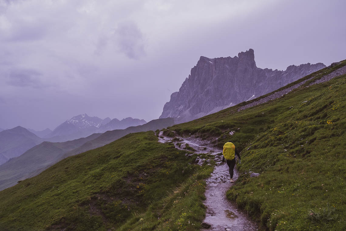 Wenn ich an die dritte Etappe des Prättigauer Höhenwegs denke, dann gilt mein erster Gedanke den Platsch- und Schmatzgeräuschen, die meine mit Wasser gefüllten Wanderstiefel bei jedem meiner Schritte von sich gaben. Denn unser Endgegner am dritten Tag war nicht wie an den Tagen zuvor Sonne und Hitze, sondern der Regen. Jede Menge davon.