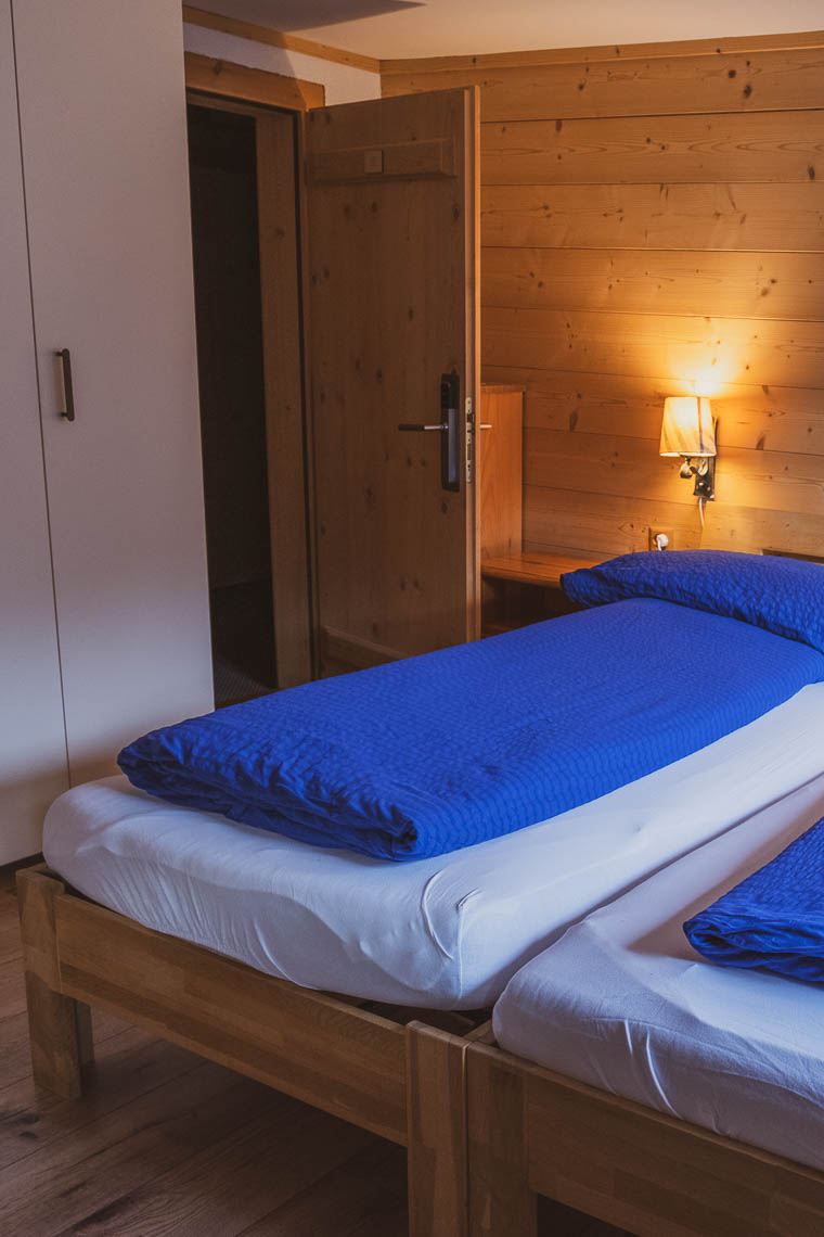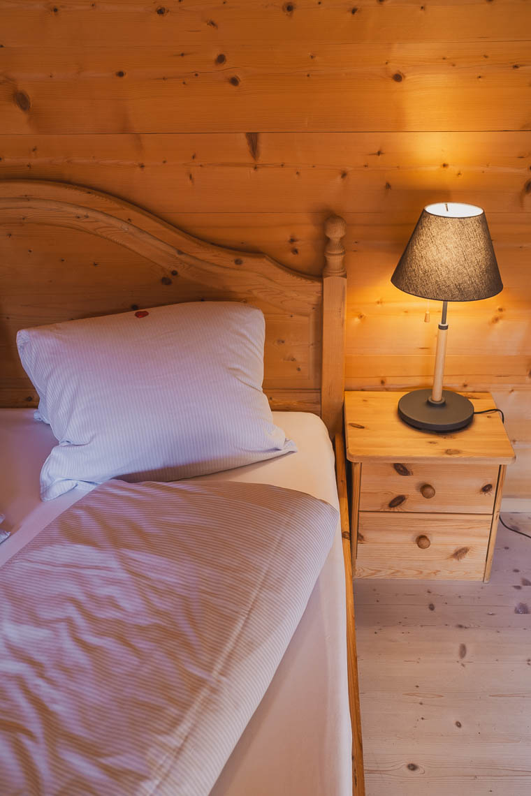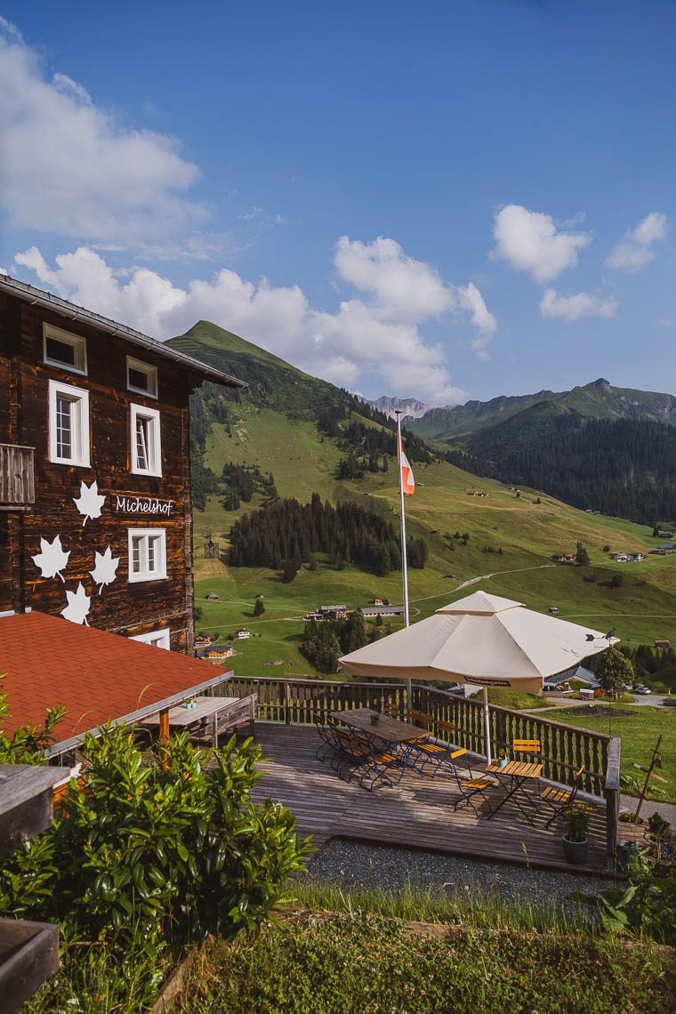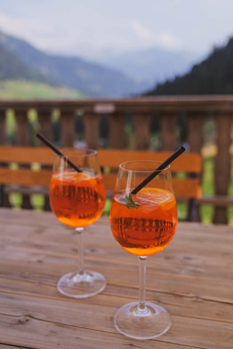 Von der Terrasse des Haus Türli aus können wir unsere Unterkunft bereits sehen. Dennoch trennen uns noch 1,7 km und einige Höhenmeter von unserem Tages- und Übernachtungsziel: Sonja’s Michelshof. Nach einem langen Wandertag hätte ich mir keine schönere Bleibe ausmalen können. Das von der jungen, unglaublich warmherzigen Gastgeberin Sonja geführte historische Berggasthaus mit seinen knarzenden Dielenböden, kuscheligen Betten und der warmen (!) Dusche fühlen sich unglaublich heimelig an und ich fühle mich vom ersten an hier wohl. Als dann auch noch der Aperol Spritz und das Abendessen mit fantastischem Blick auf das Tal serviert wird, bin ich vollkommen im Glück.