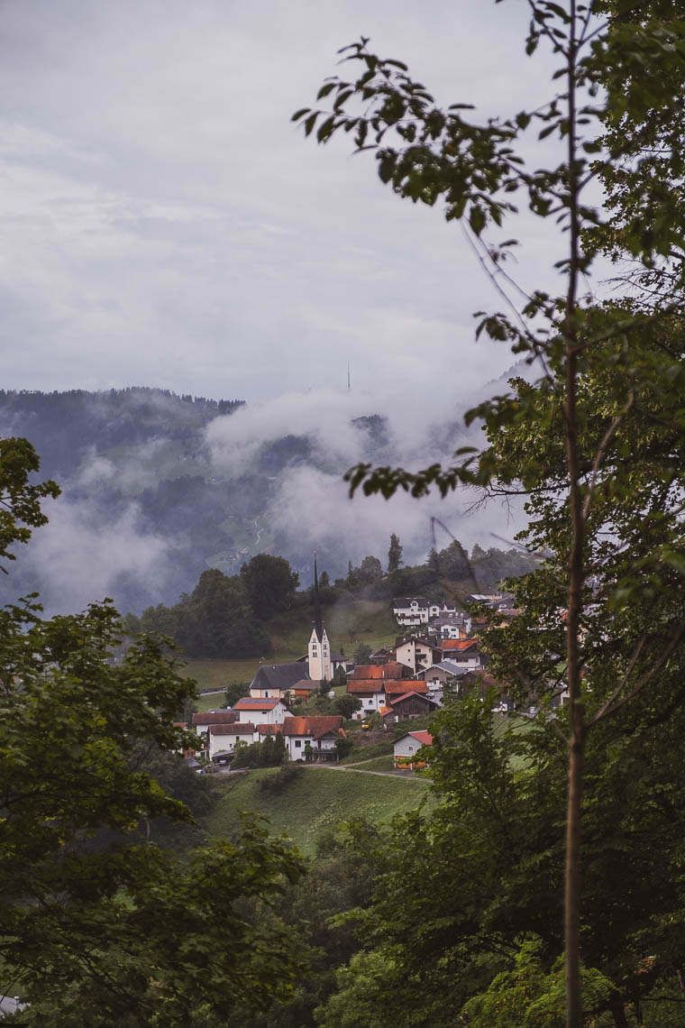 Über den Wanderweg kann ich daher in diesem Fall leider nichts sagen, da ich ausschließlich auf Trotti-tauglichen Alpstraßen unterwegs war. Die Fahrt machte einen Heidenspaß und dadurch, dass meine Freundin zu Fuß unterwegs war, blieb mir noch genug Zeit für Fotostopps. Der Regen fiel nämlich weniger schlimm aus, als erwartet, und sorgte für eine mystische Atmosphäre mit nebelverhangenen Bergen und Bäumen. Ein wunderschöner Abschluss unserer Wanderung, die im idyllischen Seewis Dorf ihr offizielles Ende fand. Wir wanderten noch weiter zum Bahnhof Seewis Pardisla, wo wir den direkten Zug Richtung Landquart (7 Minuten) nahmen.