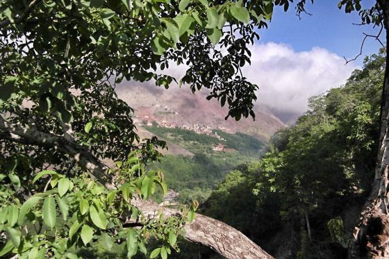 Weiter und weiter steigen wir nun den Berg hinauf, zusammen mit einem Ziegenhirten, der wie uns Brahim erzählt früher auch im Tourismus tätig war. Der Mann, bestimmt über 50 Jahre alt, steigt uns voran den Berg hinauf wie eine junge Bergziege. Beneidenswert! So fit wäre ich auch gerne! Bei Verlassen des Tales zieht plötzlich wieder Wolkendecke auf, ein letzter Blick zurück und schon ist das Tal unseren Blicken entschwunden.