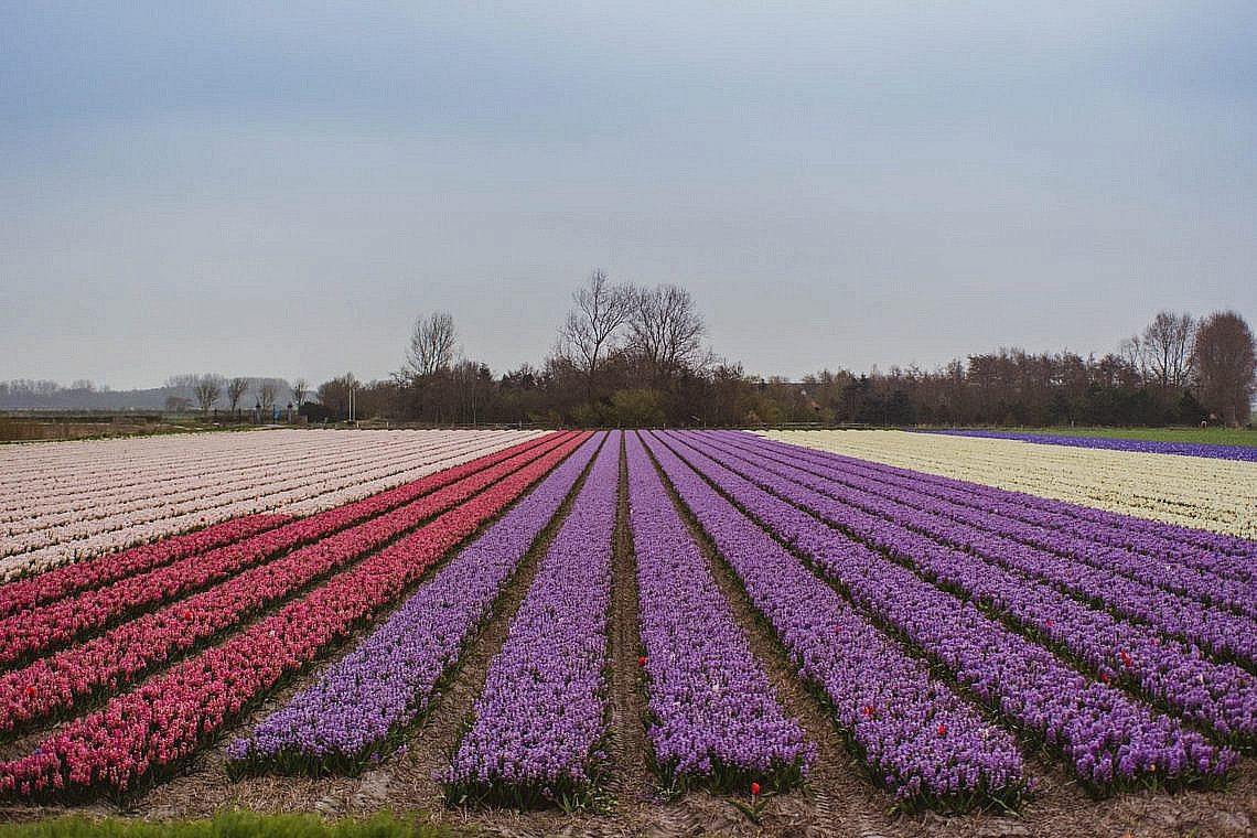 Als Richtlinie gilt: Von Ende März bis Mitte Mai blühen die Felder. Genau lässt sich das jedoch nie voraussagen, da das Wetter und die Härte des vorhergehenden Winters die genaue Blütezeit bestimmt. Allgemein hat man aber in der 2. Aprilhälfte die größte Chance auf blühende Felder. Ende März beginnt die Krokussaison, ab April sind die Hyacinten an der Reihe, die die Felder in pink, violett und weiß zum Leuchten bringen und von Mitte April bis Anfang Mai kommen die Tulpen hinzu.