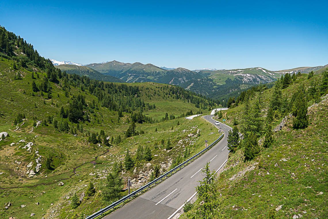 Weiter ging es für uns auf der Nockalmstraße. Unser Tipp für einen Fotostopp der schönsten Kurve der Nockalmstraße: Kurz vor der Eisenthalhöhe. Diese ist mit 2.042 m der höchste Punkt der Nockalmstraße und bietet einen Rundblick auf die Nockberge und einen Laden mit Jausenstation. Von hier aus kann man auf kleine Wanderungen aufbrechen, zum Beispiel auf den Königsstuhl (30 Minuten Gehzeit).