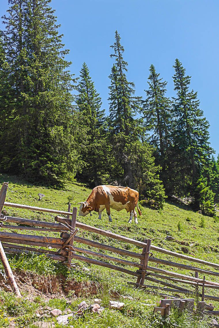 Wir fahren weiter zu unserem Tagesziel: Der familiengeführten Heiligenbachhütte auf 1.850 m. In der wundervoll urigen Hütte mit eigenem Sennereibetrieb werden Spezialitäten wie Almkäse und Almbutter selbst hergestellt. Gekocht wird über dem Feuer, beleuchtet wird mit Kerzen, denn strombetrieben (über einen Generator) ist hier nur der Kühlraum für die Milch. Abschalten tut man hier von ganz alleine. Abends kommen Einheimische und Gäste an den gemütlichen Holztischen zusammen und lassen es sich bei Kasnudeln oder – in unserem Fall – den leckersten Kaiserschmarrn, die ich je gegessen habe – gut gehen. Ein perfekter Tag in den Bergen!