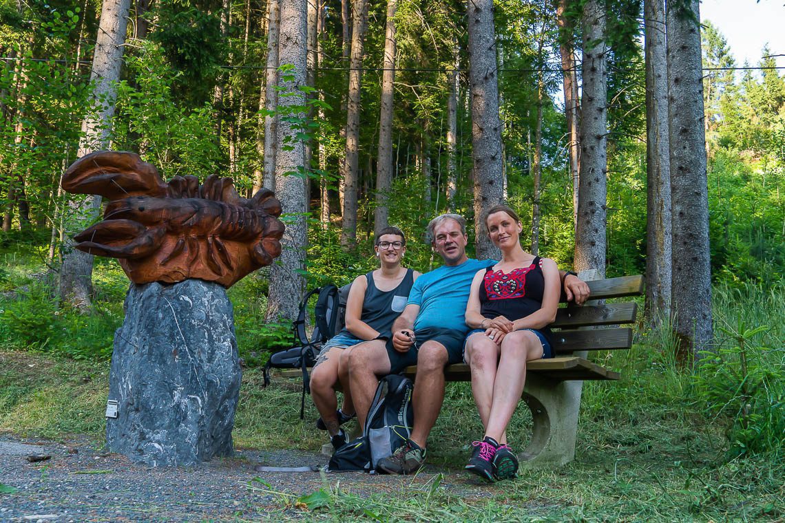 Der Magische Moment in Fresach widmet sich einem Thema, mit dem sich nur wenige auskennen: Krebse. Genauer gesagt dem “Goldenen Ritter”, dem seltenen Steinkrebs. Unter Leitung unseres Natur-Aktiv-Guides Rudolf Eggarter, Rudi genannt, folgen wir der Krebsenwandermeile entlang des Weirerbachs, welcher den natürlichen Lebensraum des nachtaktiven Steinkrebses bildet. Rudi erzählt, dass das Vorkommen des geschützten Steinkrebses in Fresach eine Besonderheit und nur der Tatsache zu verdanken ist, dass sich die Gemeinde auf einem Hochplateau befindet. Anderenorts in Österreich und Europa fiel der Steinkrebs nämlich der Krebspest (ab 1880) zum Opfer. Wusstest Du zum Beispiel, dass Flusskrebse zu den ältesten Lebewesen der Welt zählen (seit ca. 280 Mio. Jahren), es über 600 Flusskrebsarten gibt und sie rückwärts flüchten? Oder dass sie als Wasserpolizei gelten (weil sie verendete Tiere bis auf die Gräten verspeisen), das Weibchen ein halbes Jahr lang (Herbst bis Frühling) 50-100 Eier in ihrer “Brutkammer” mit sich herumtragen und dass verlorene Scheren, Beine und Fühler nachwachsen können? Ich bin erstaunt, wieviel es über die nur 10-12 cm kleinen Lebewesen zu lernen gibt. Dank Rudis geschultem Auge werden wir vielfach fündig und können den unauffälligen Steinkrebs vom Ufer oder Brücken aus beobachten. Das Highlight: Ein frisch gehäuteter Steinkrebs. Ein bis zweimal im Jahr streift der Steinkrebs nämlich seinen Panzer ab, da er zu klein geworden ist und ist dann kurzfristig weich, schutzlos und bläulich-weiß. Der “Weier”, der ehemalige Moorsee am oberen Ende der Krebsenwandermeile bildet unseren Umkehrpunkt, bevor der kulinarische Teil des Magischen Moments beginnt: Eine Verkostung des Signalkrebses, dem “bösen”, da nicht heimischen, nordamerikanischem Verwandten des Steinkrebses, der oft Überträger der Krebspest ist. Dazu wird Wein geschenkt.
