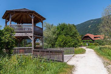 Der Slow Trail am Ossiacher See führt durch eine ganz besondere Naturlandschaft: Das Bleistätter Moor, ein in den 1930er Jahren trockengelegtes Moor, welches ab 2017 durch gezielt wieder geflutet wurde und seither langsam regeneriert wird. Dadurch präsentiert sich hier eine einmalige Landschaft im Wandel mit mystischen Moorlandschaften, unberührten Uferpassagen und einer einzigartigen Flora und Fauna. Beginnend am berühmten Domenig Steinhaus, einem architektonischen Meisterwerk, das die Landschaft Kärntens wiederspiegeln soll und 12 Jahre bis zu seiner Fertigstellung dauerte, führt der Wanderweg entlang der Uferpromenade ins Bleistätter Moor. Hier lässt sich eindrücklich beobachten, wie sich die Natur wieder regeneriert und an die neuen Umstände anpasst. Neben abgestorbenen Baumstümpfen erwachen neue Pflanzen zum Leben, die über 100 verschiedenen Vogelarten, Schmetterlingen, Fledermäusen und sogar Bibern ein zuhause bieten. Zwei Aussichtstürme, Aussichtsplattformen, verschiedene Ruheplätze und Informationstafeln sorgen für ein Rundum-Erlebnis.